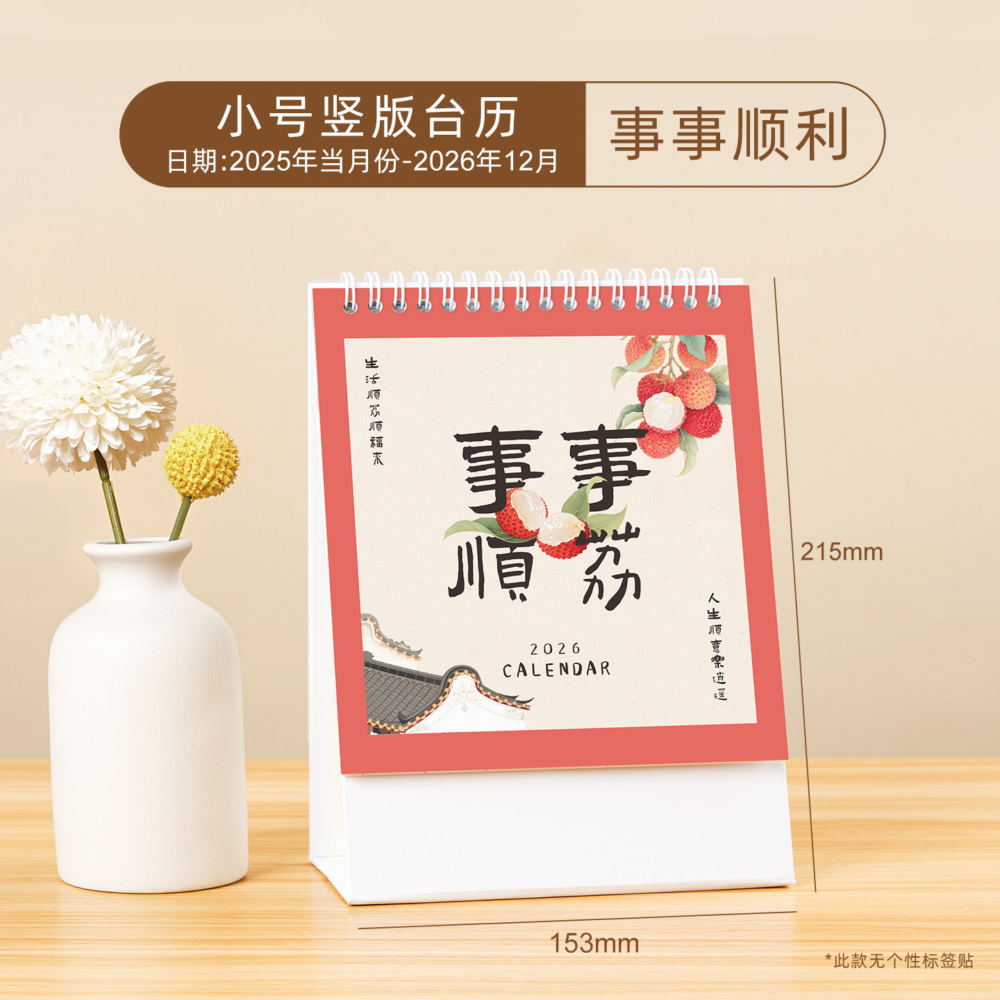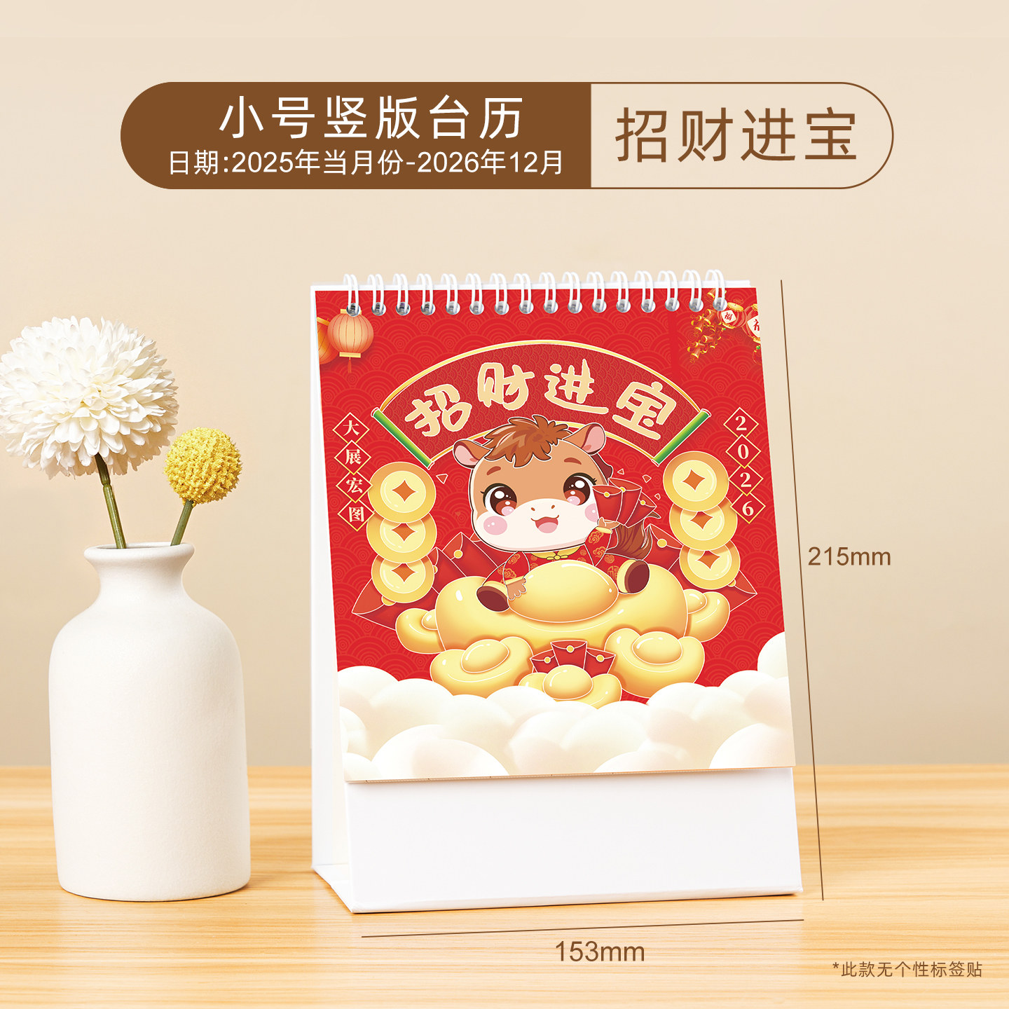 中国风竖款纸架台历2026年新款桌面定制公司企业创意摆件韩版学生日历计划本办公室桌面马年月历广告工作批发