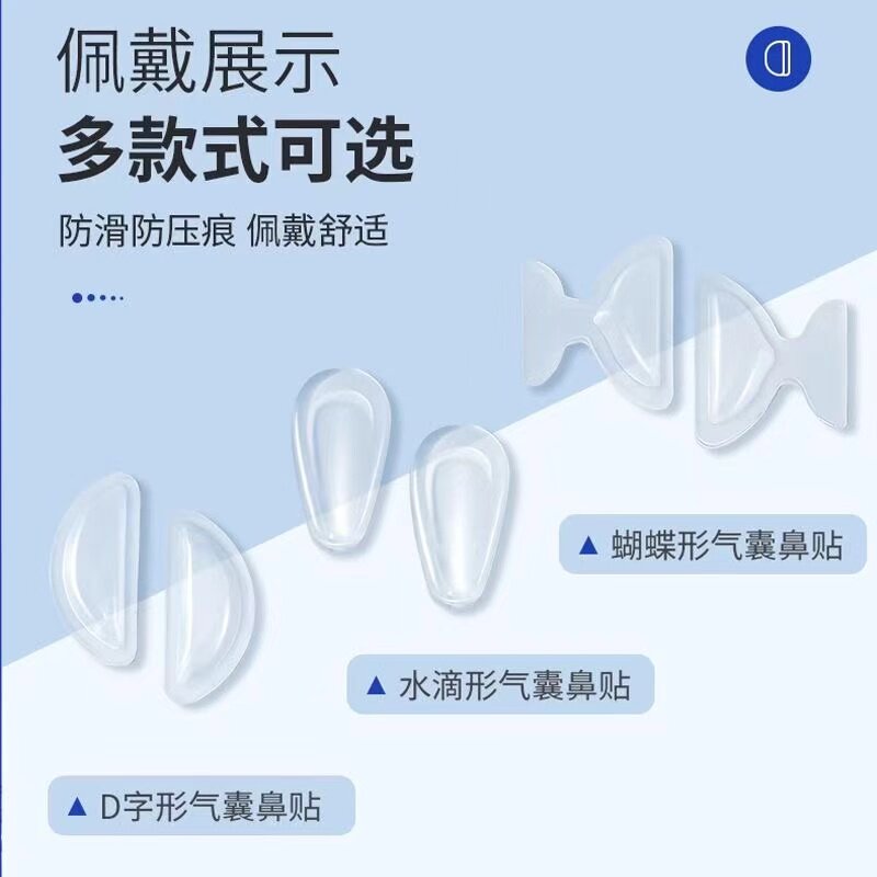眼镜硅胶鼻托防滑鼻梁垫板材配件框架贴增高鼻托贴气囊防压痕