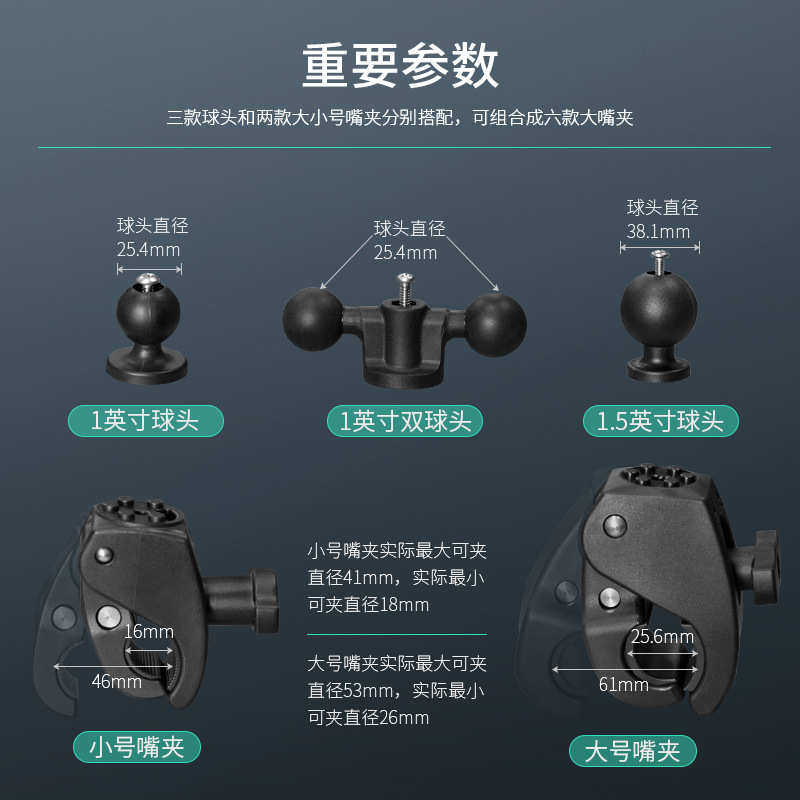 农机设备圆管固定支架1英寸球头快拆夹兼容1840mm直径圆管大嘴夹
