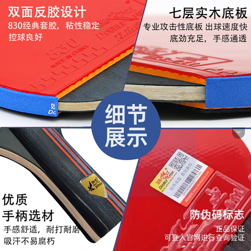 双鱼8星级乒乓球拍专业级正品学生比赛成品拍底板短柄直拍初学者