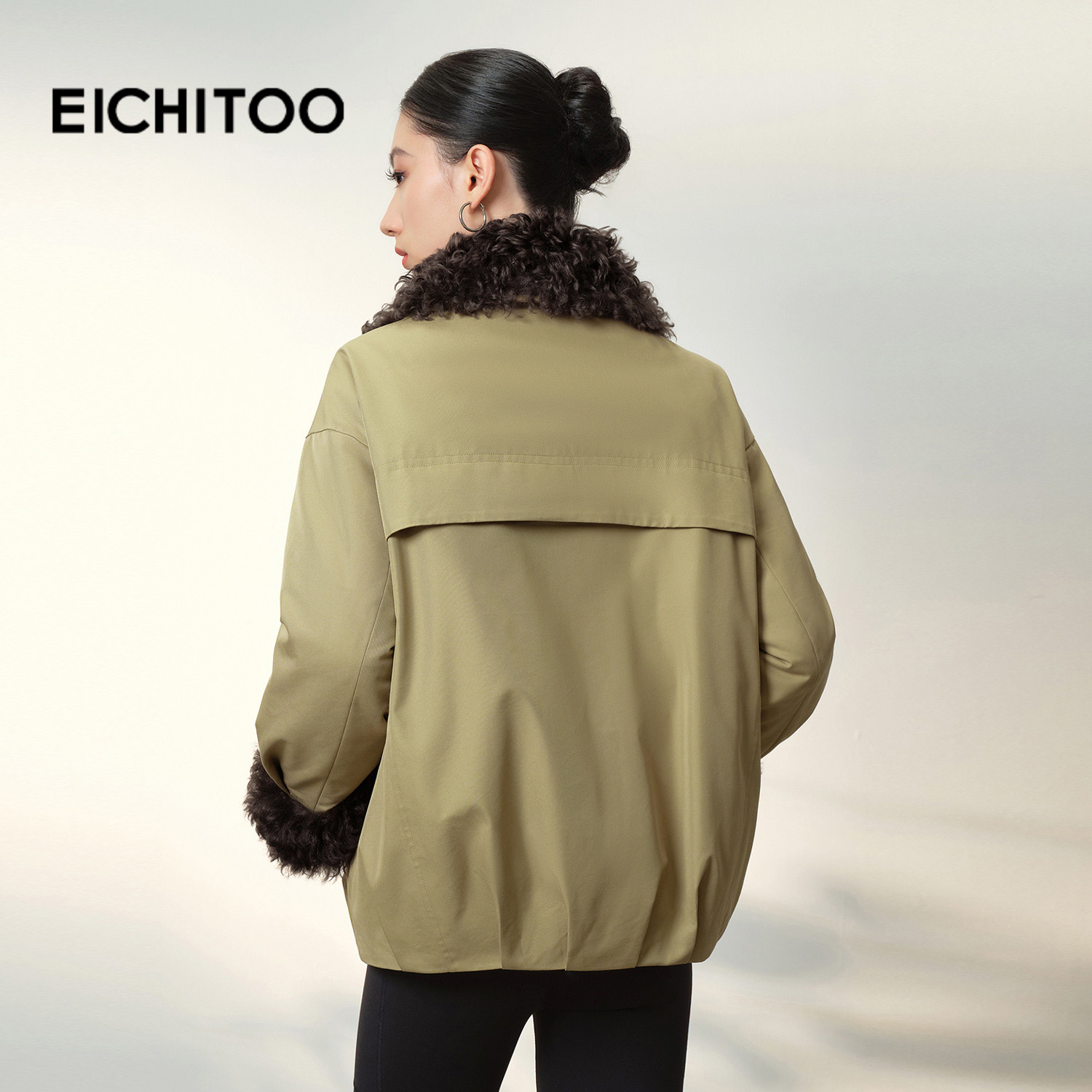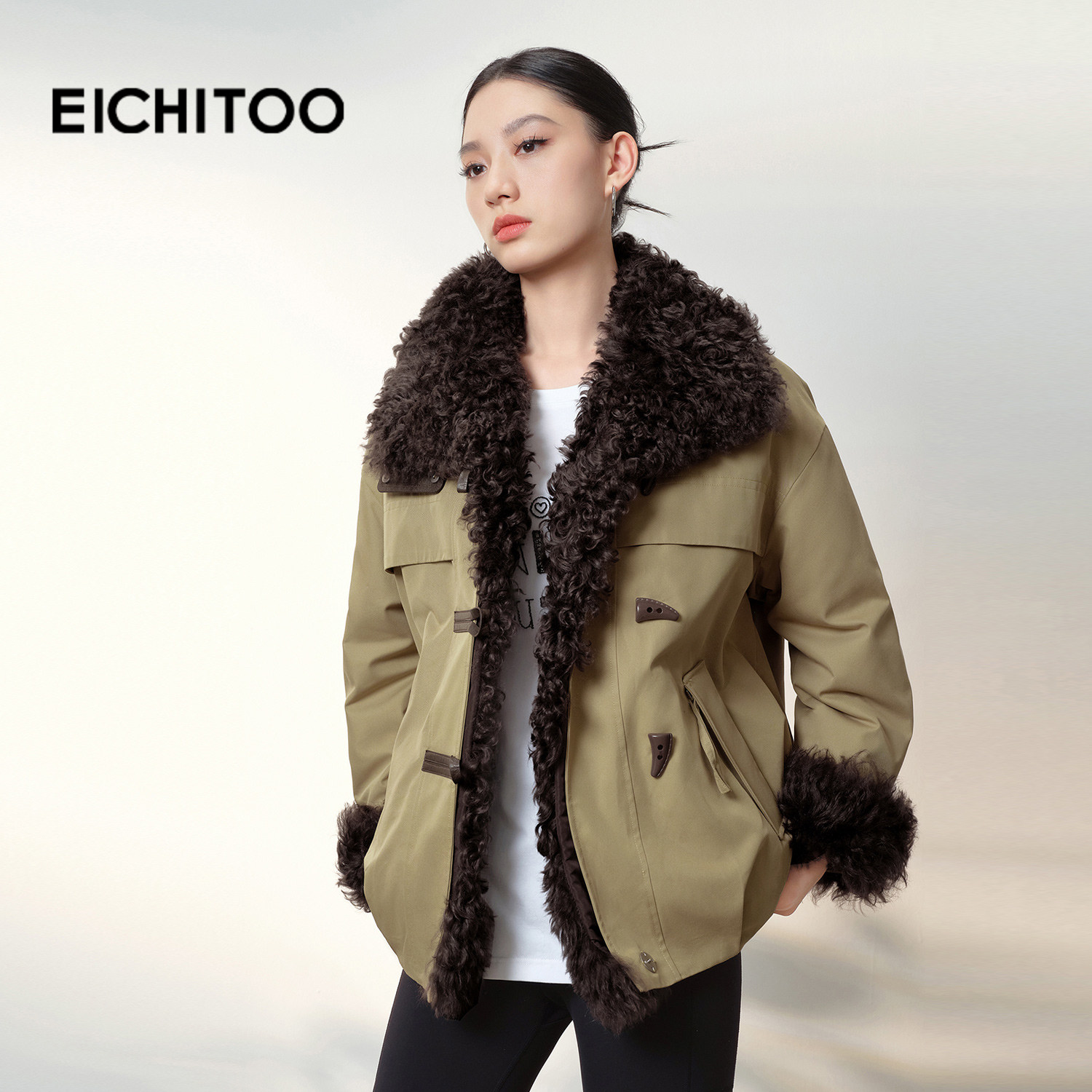 爱居兔巴恩风羊毛皮草鹅绒服女2025年冬季新款时尚牛角扣保暖外套