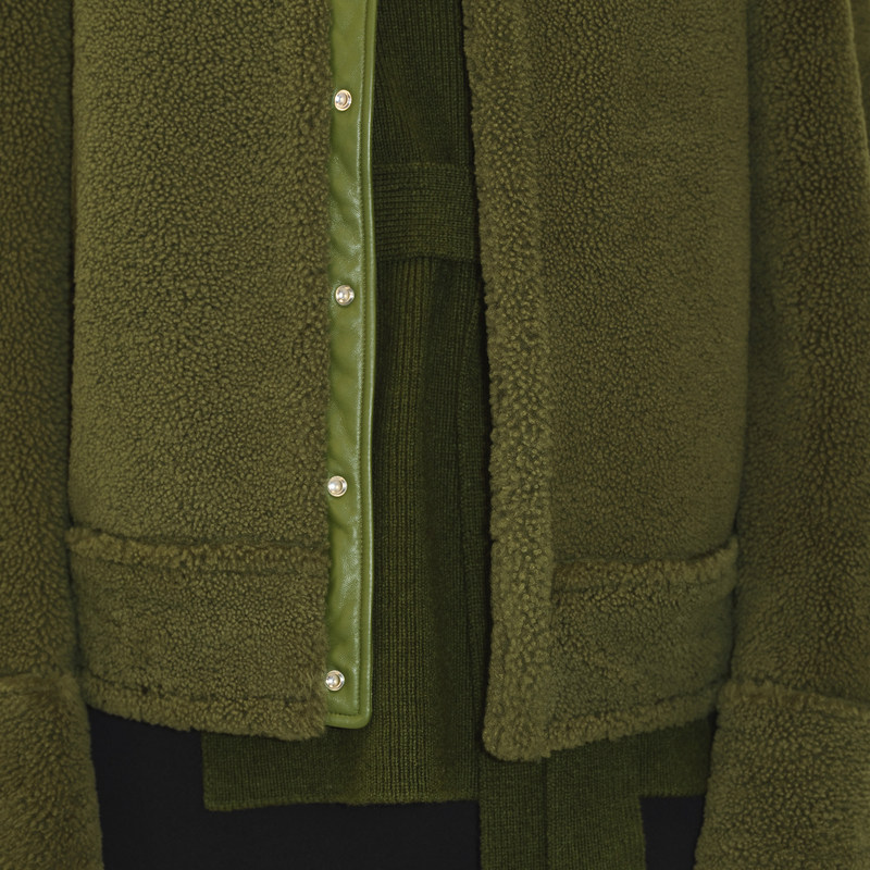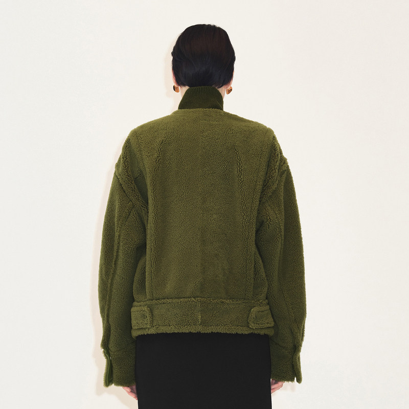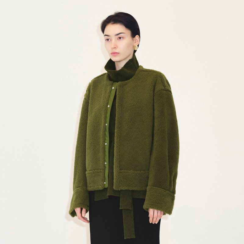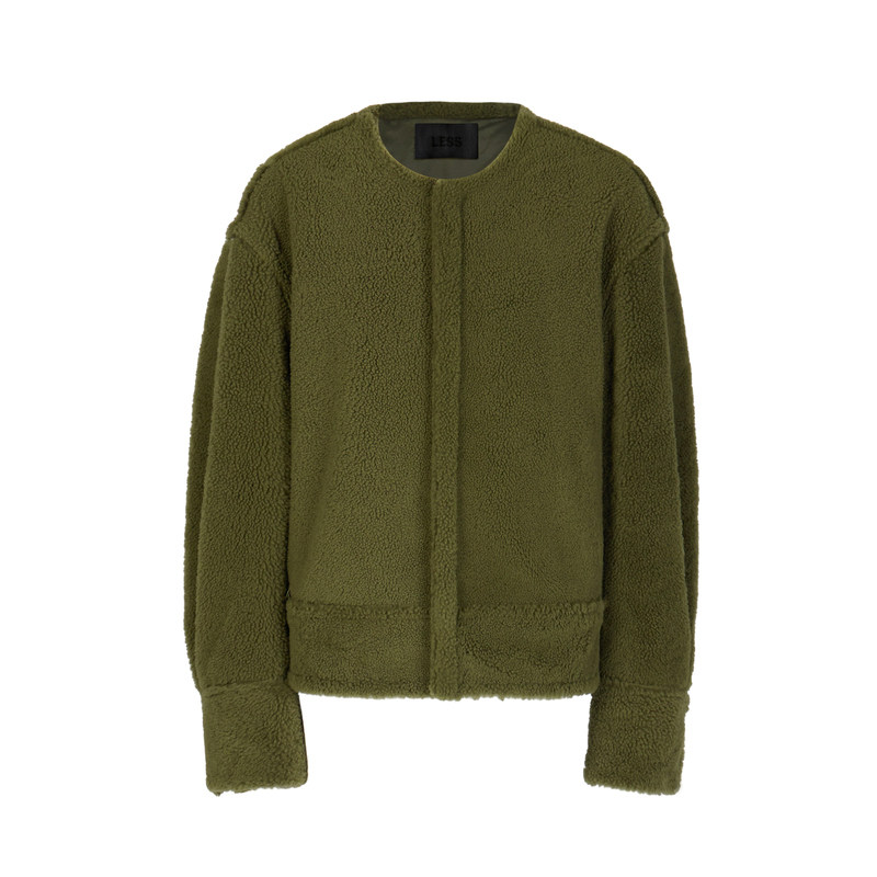 LESS冬季复古羊毛棒球服简约舒适小众宽松短款皮草外套2M0A12050