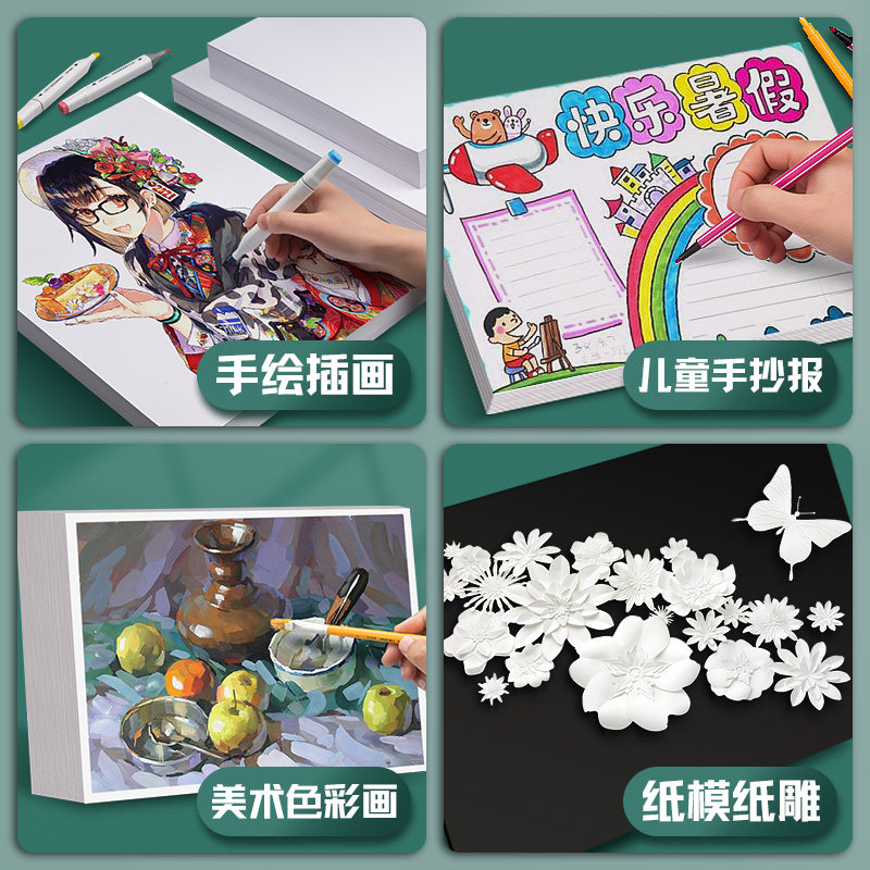 元浩荷兰白卡纸A3美术专用白色4K绘画A4厚硬手工8K马克笔手绘250/300/350克画画4/8开手抄报绘图双面名片空白