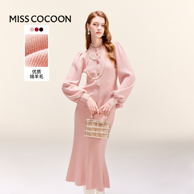 MISSCOCOON可可尼圆领红色连衣裙女2025秋冬新款小香风时尚套装