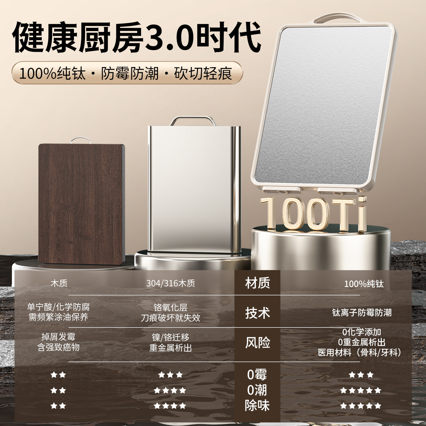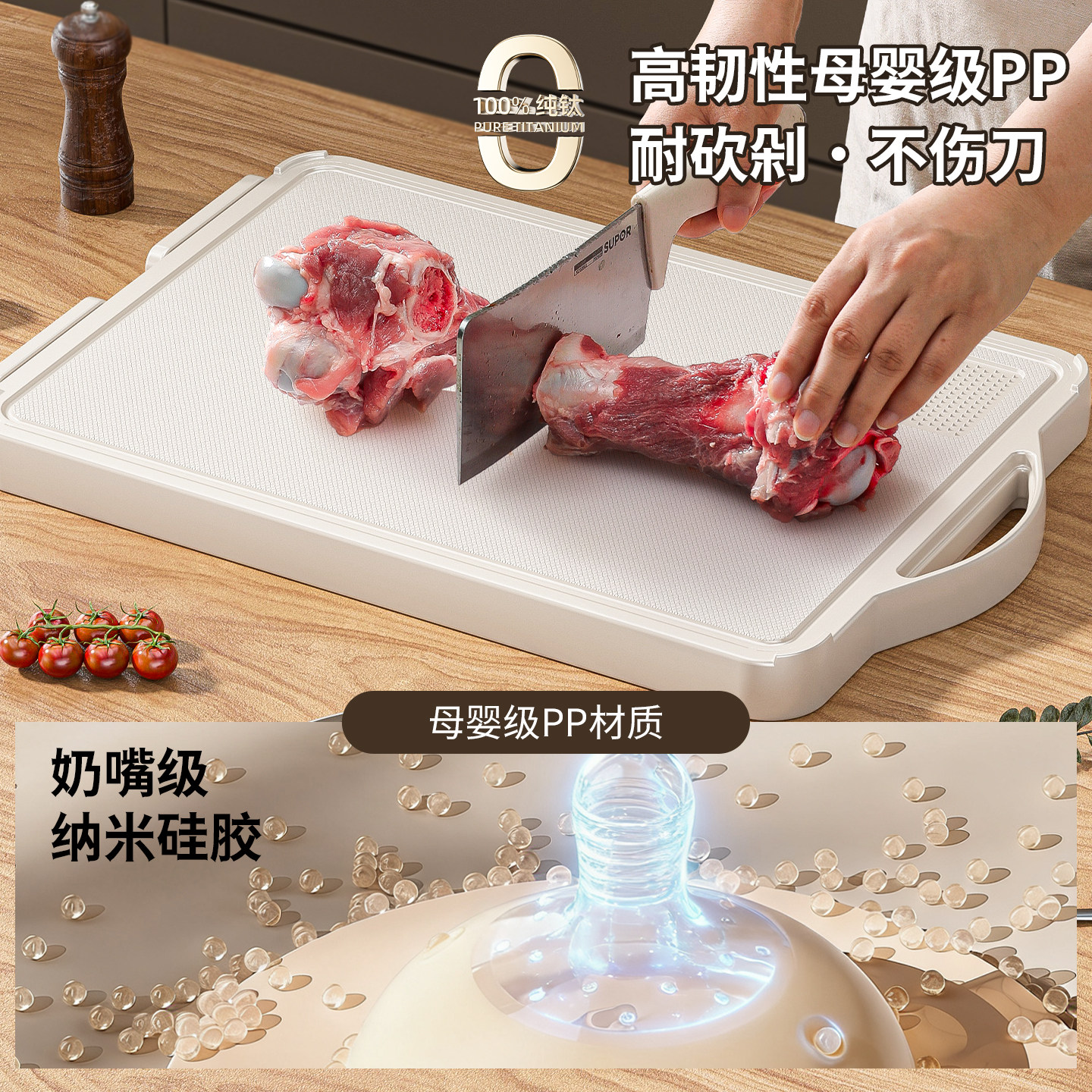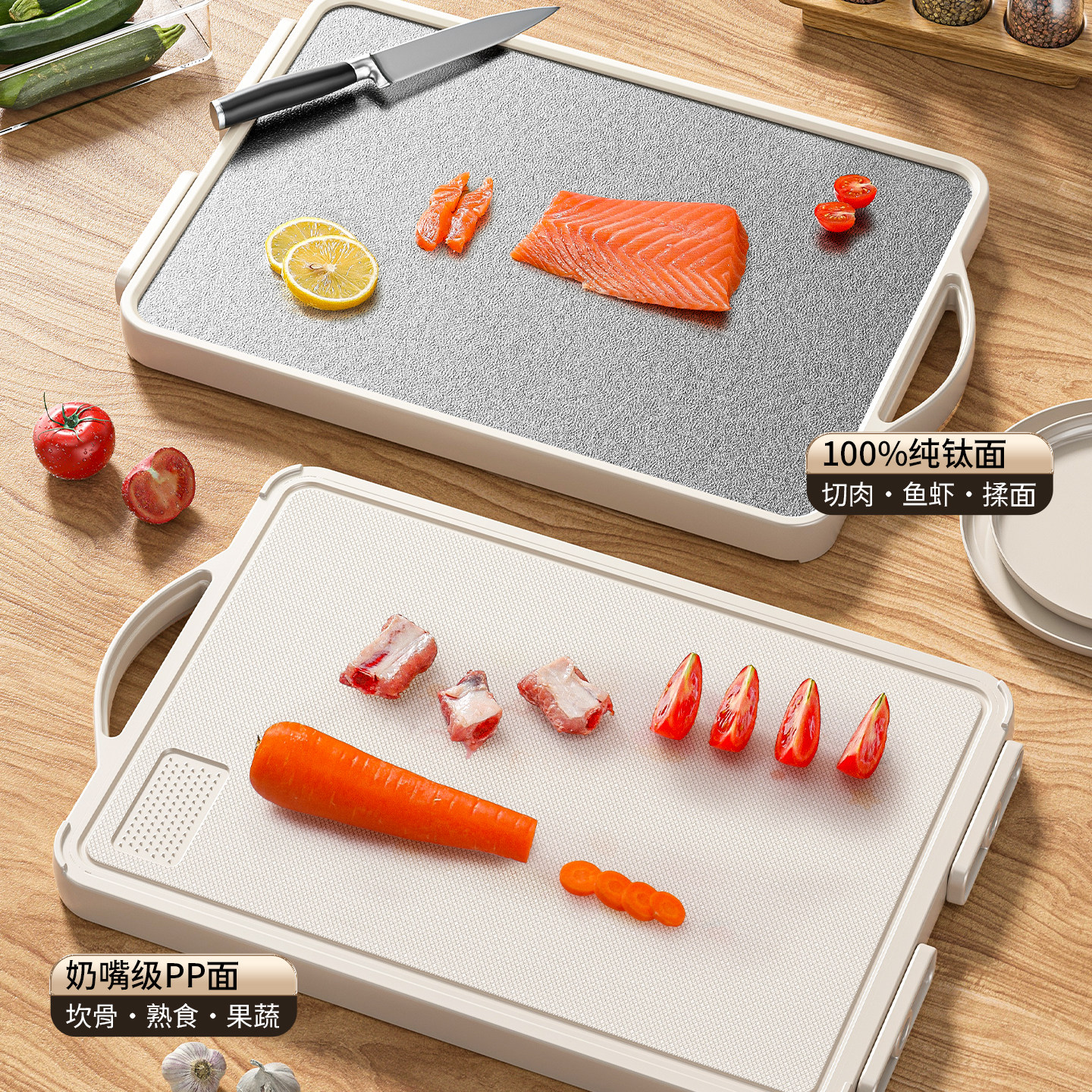 100%纯钛切菜板家用抗菌防霉食品级双面水果砧板厨房专用案板粘板