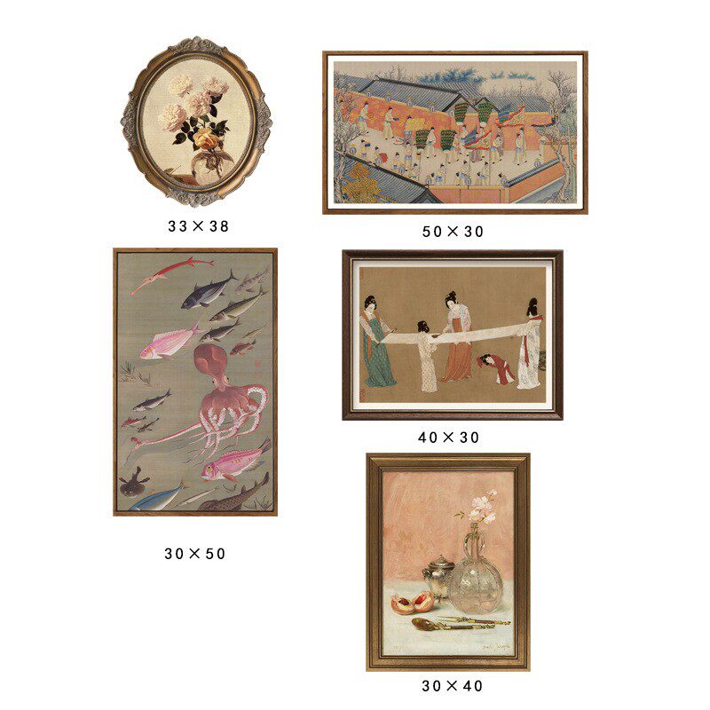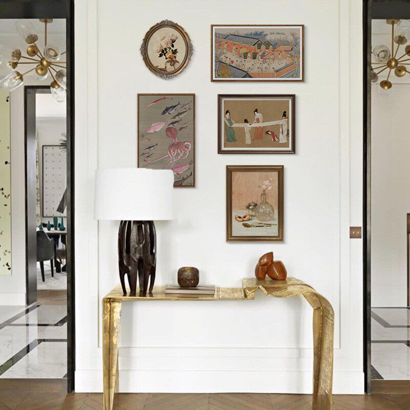 现代新古典中式装饰画客厅玄关清明组合挂画卧室床头织女复古壁画