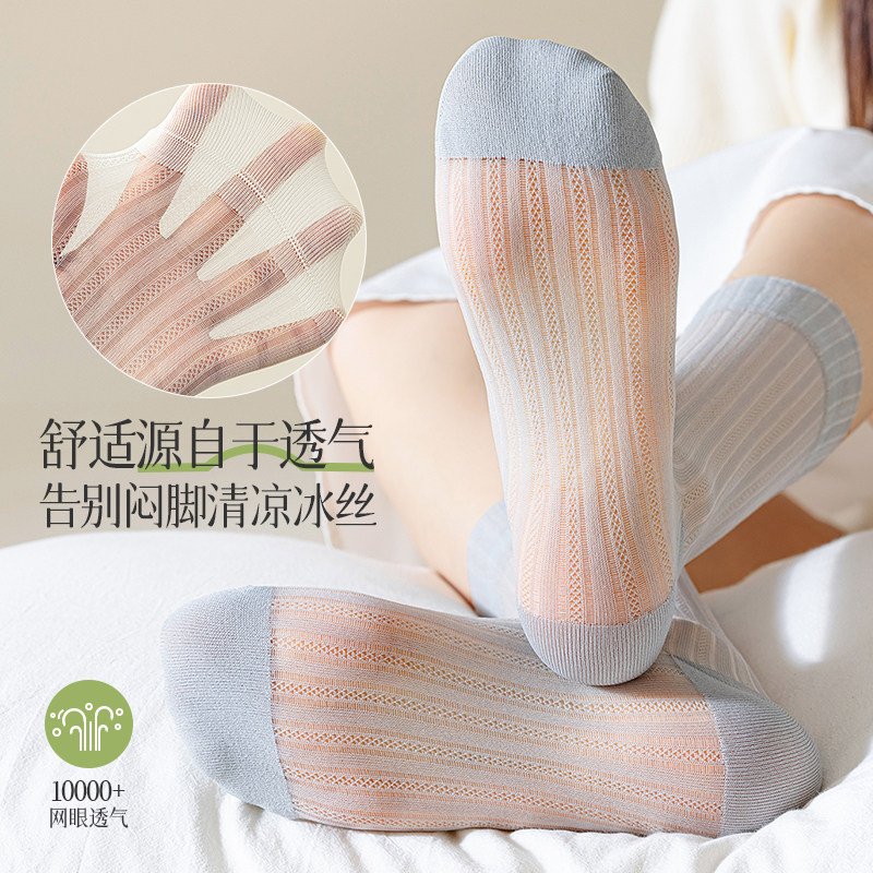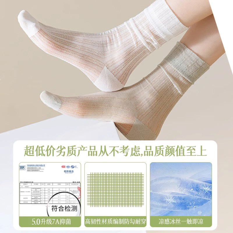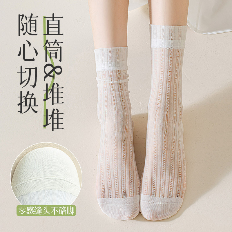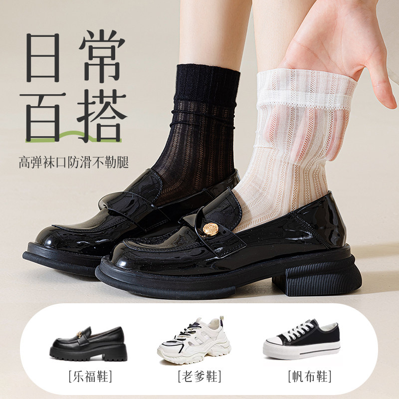 冰冰袜子女夏季薄款中筒水晶袜无骨堆堆袜夏天配小皮鞋黑白色长袜