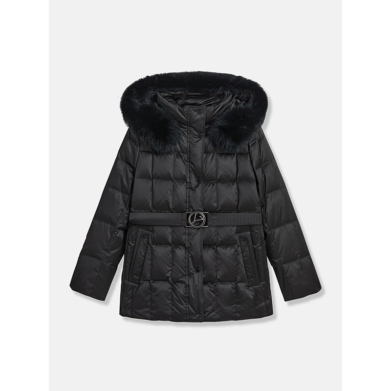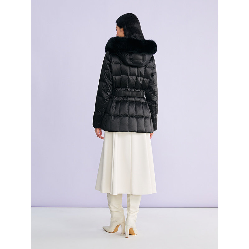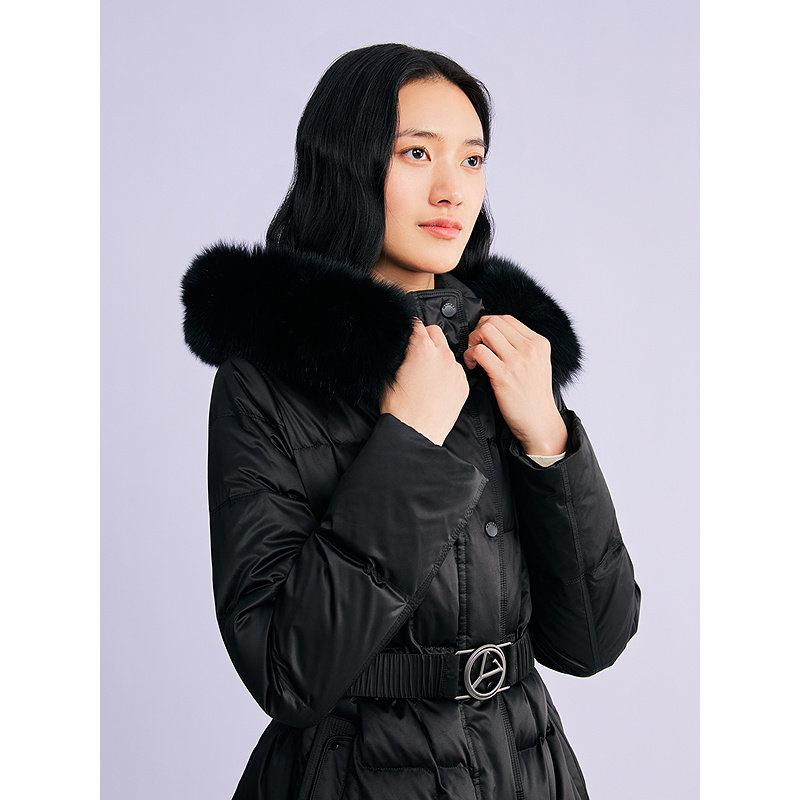 YINER音儿专选2026春季新款一手长柔光缎面狐狸毛领连帽羽绒服