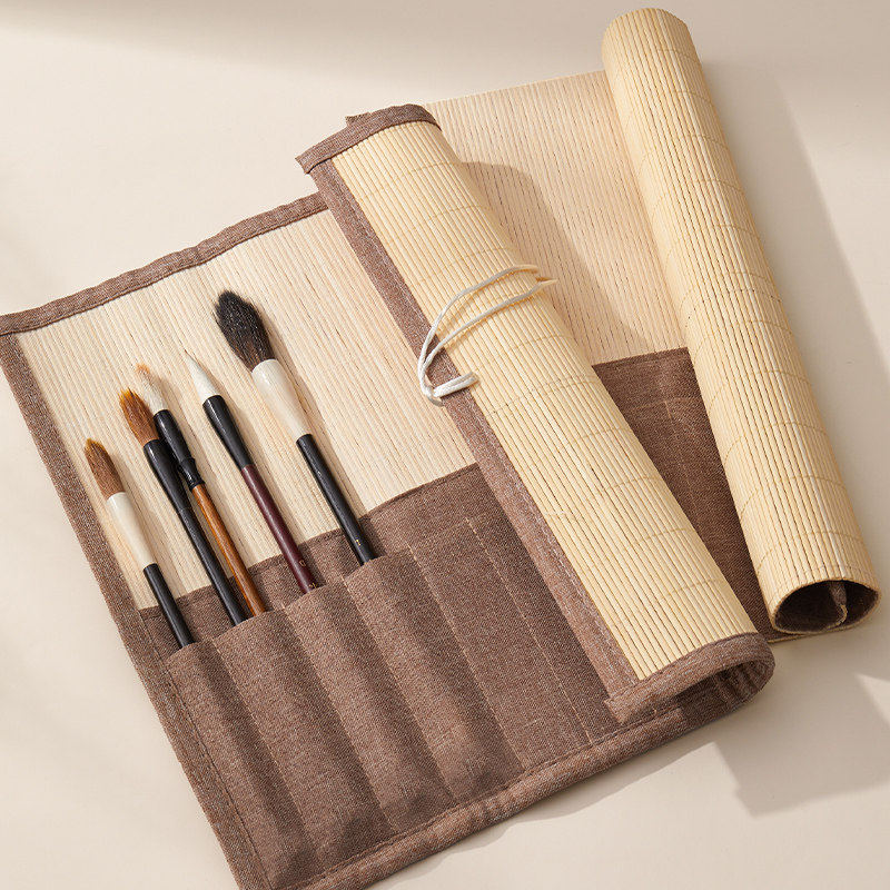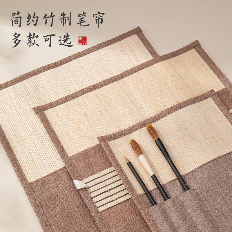 六品堂麻布毛笔笔帘便携书法毛笔卷竹笔帘学生笔袋毛笔专用书法国画毛笔收纳袋卷毛笔的帘子收纳卷帘收纳盒