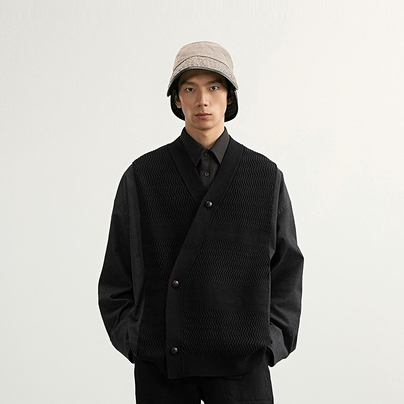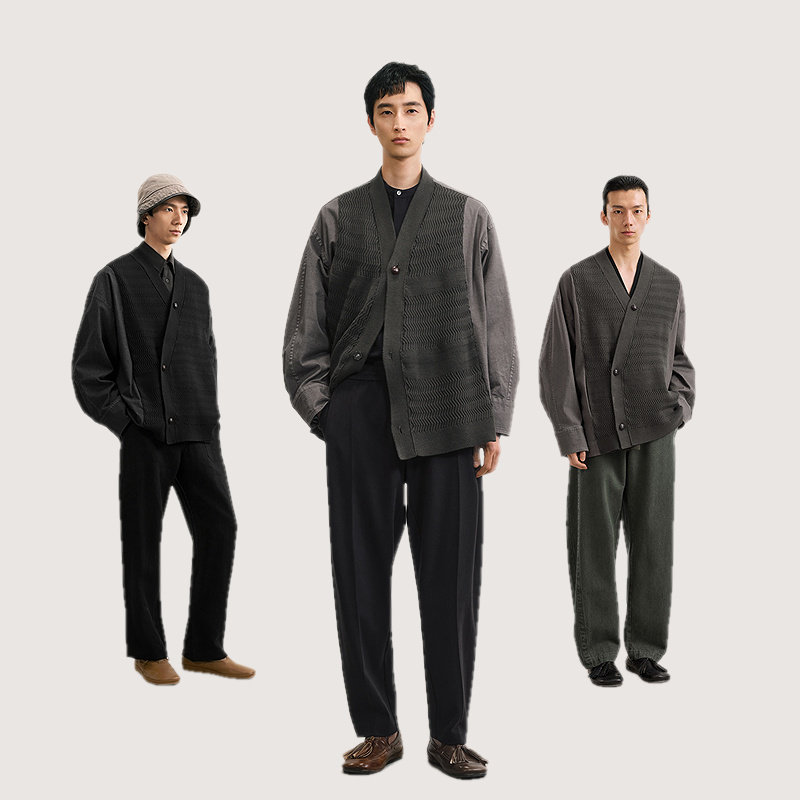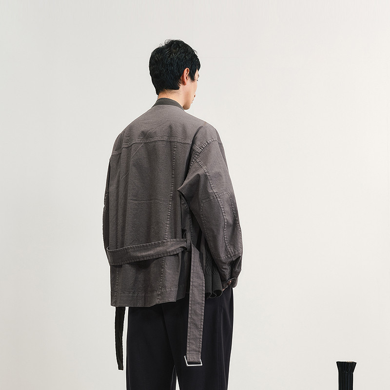 速写男装早春新款男士外套交领拼接夹克廓形外套新中式复古时尚