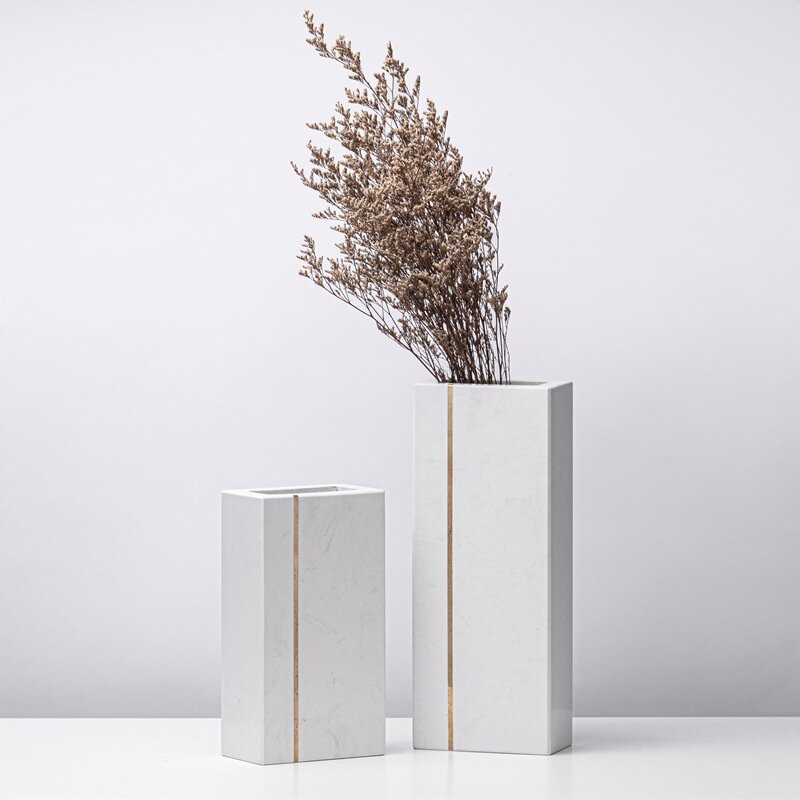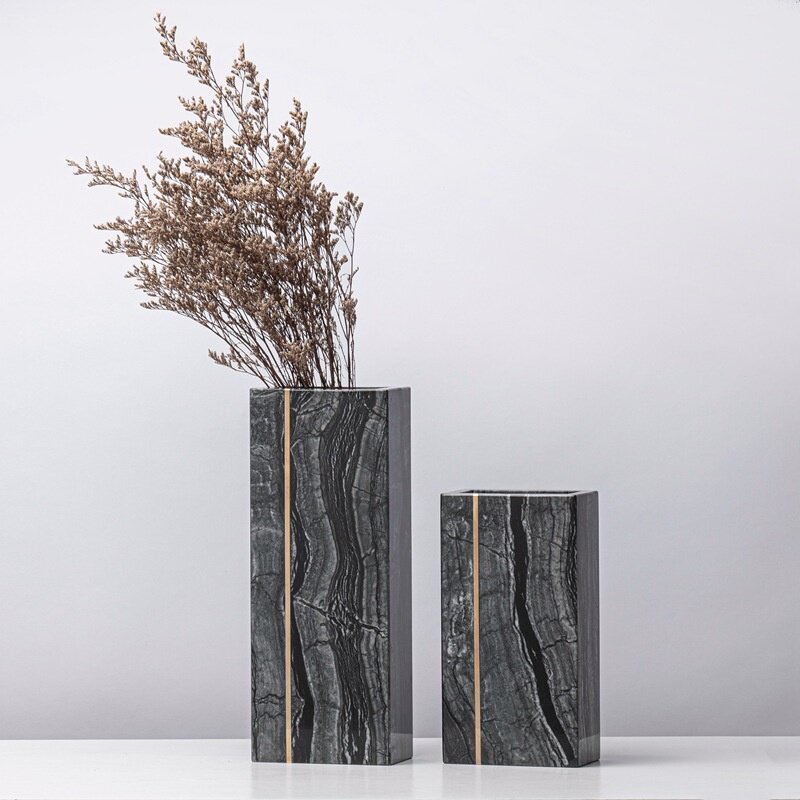 简约现代创意大理石花瓶摆件软装样板间售楼部客厅桌面花器装饰品