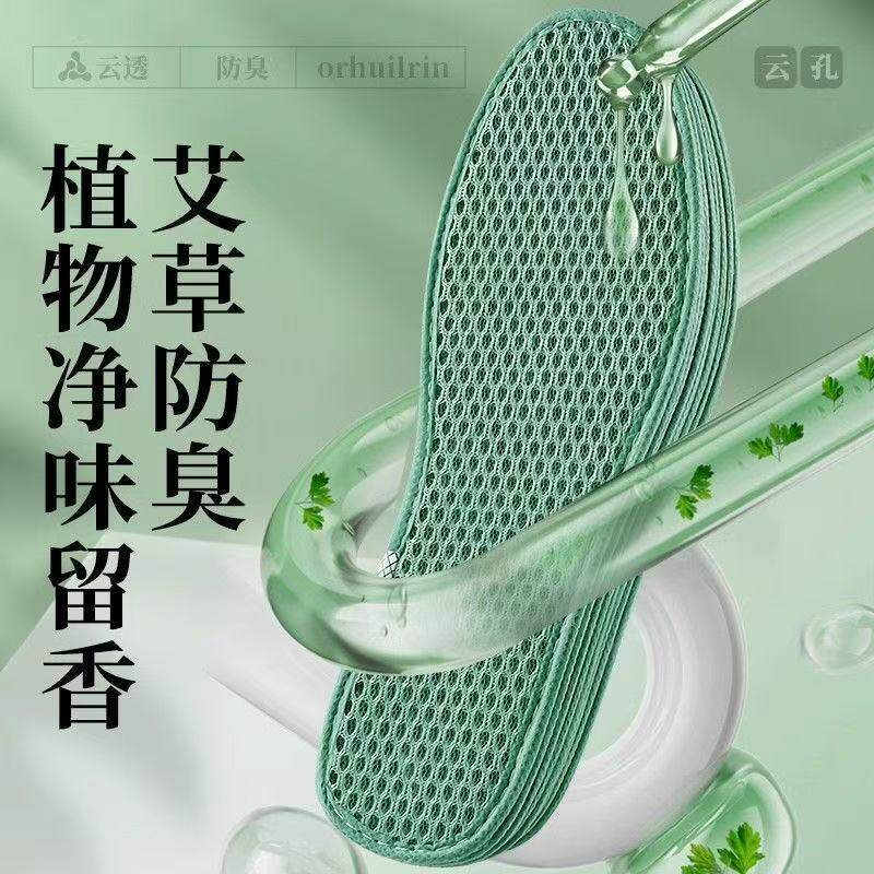 艾草除臭鞋垫男士吸汗防臭透气超软皮鞋汗脚专用竹炭夏季减震留香