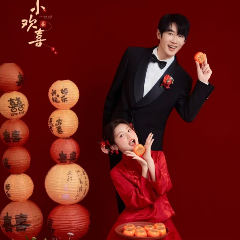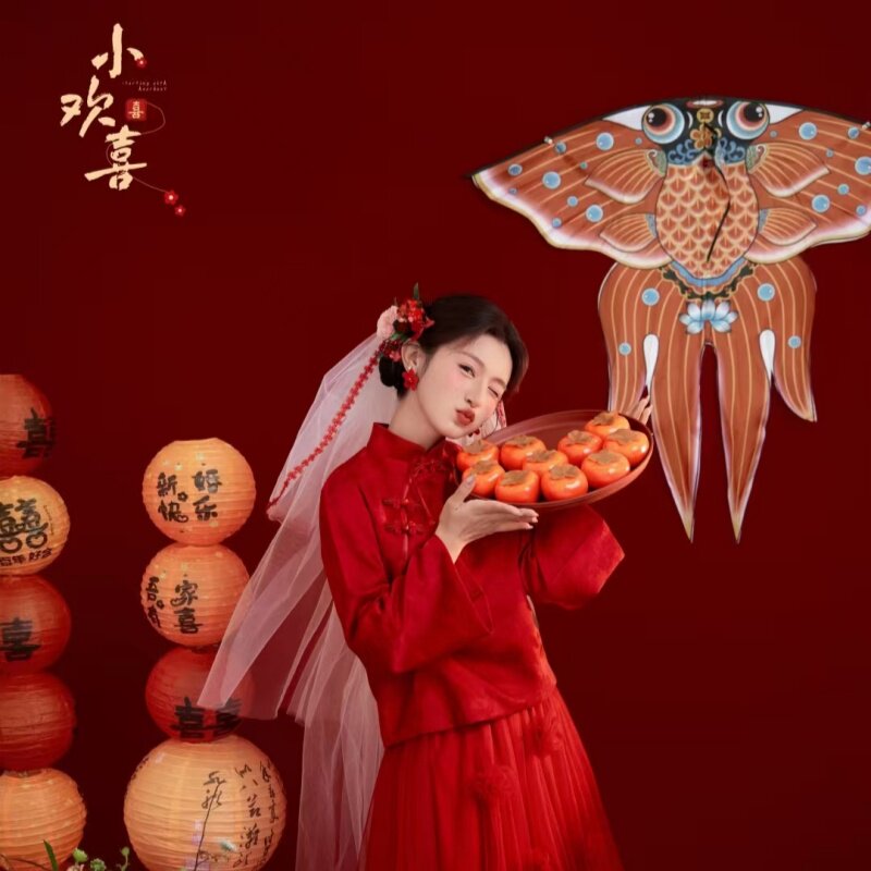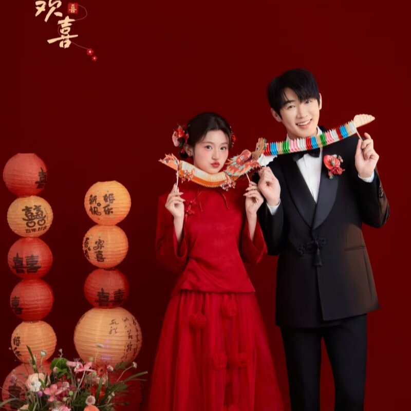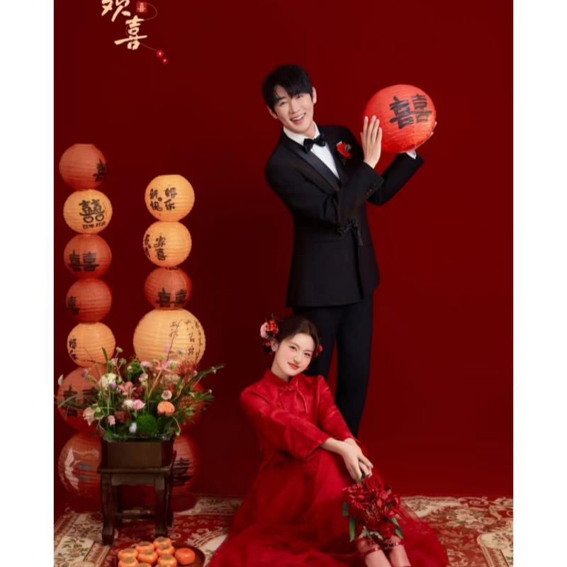 新中式婚纱照红色喜嫁风摄影道具手拿柿子旗袍写真拍照道具