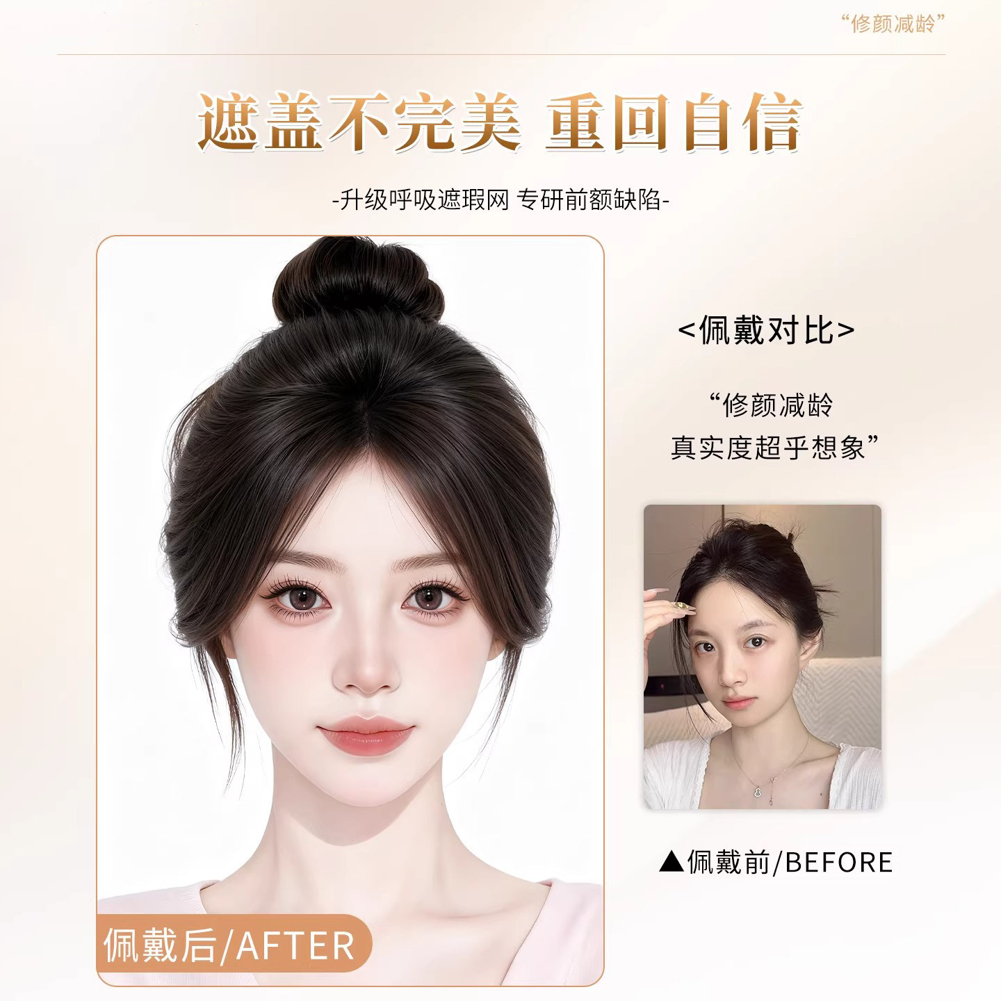 假发女片头顶增发量仿真高颅顶蓬松遮白发自然前额八字刘海补发片