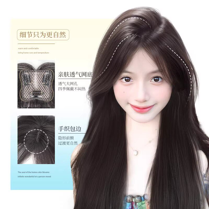 刘海假发女片头顶遮白发自然前额仿真发八字空气刘海高颅顶假发片