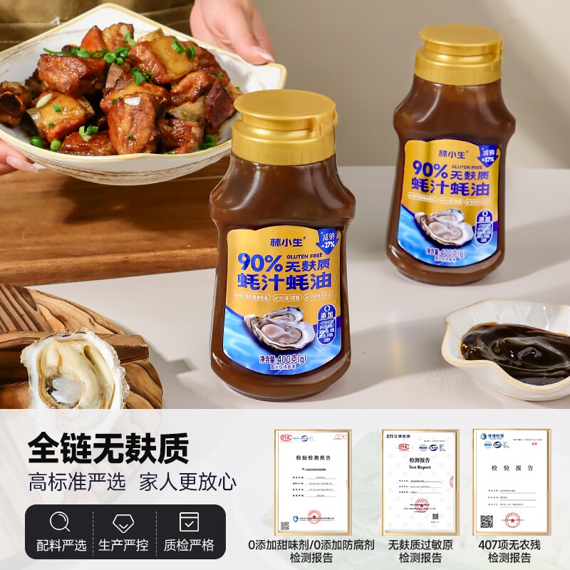 林小生无麸质蚝油90%蚝汁400g挤挤瓶0添加防腐剂增香桥本宝宝瓶装