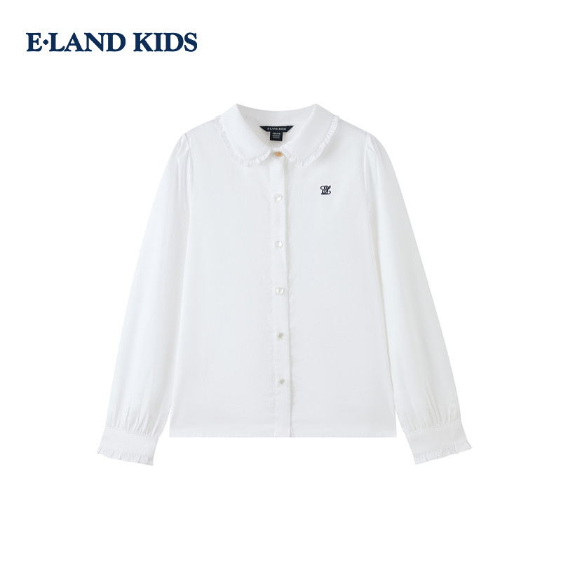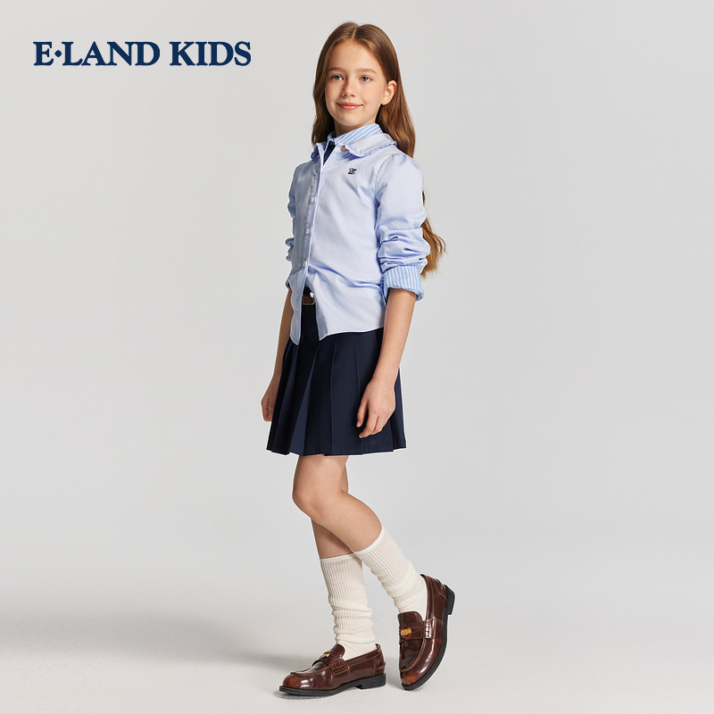 【100%棉】eland kids衣恋童装女童翻领衬衫25秋冬新品学院风刺绣