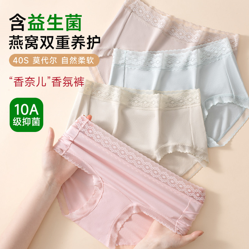 宝娜斯桑蚕丝新国风10A抗菌中高腰加长裆内裤女夏薄款大码2025 新