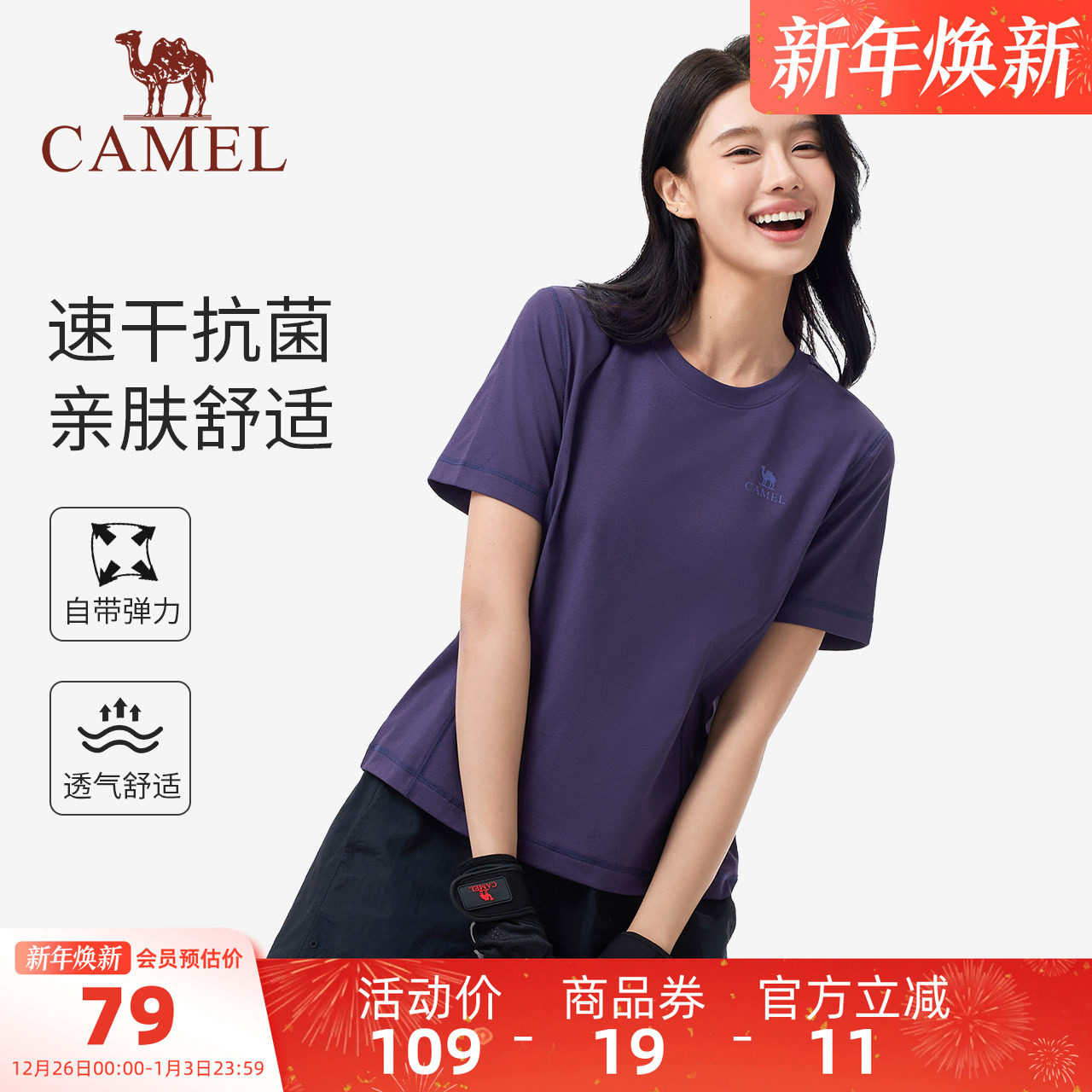 骆驼女装夏日速干衣短袖T恤新款百搭抗菌防晒衫运动休闲上衣男士