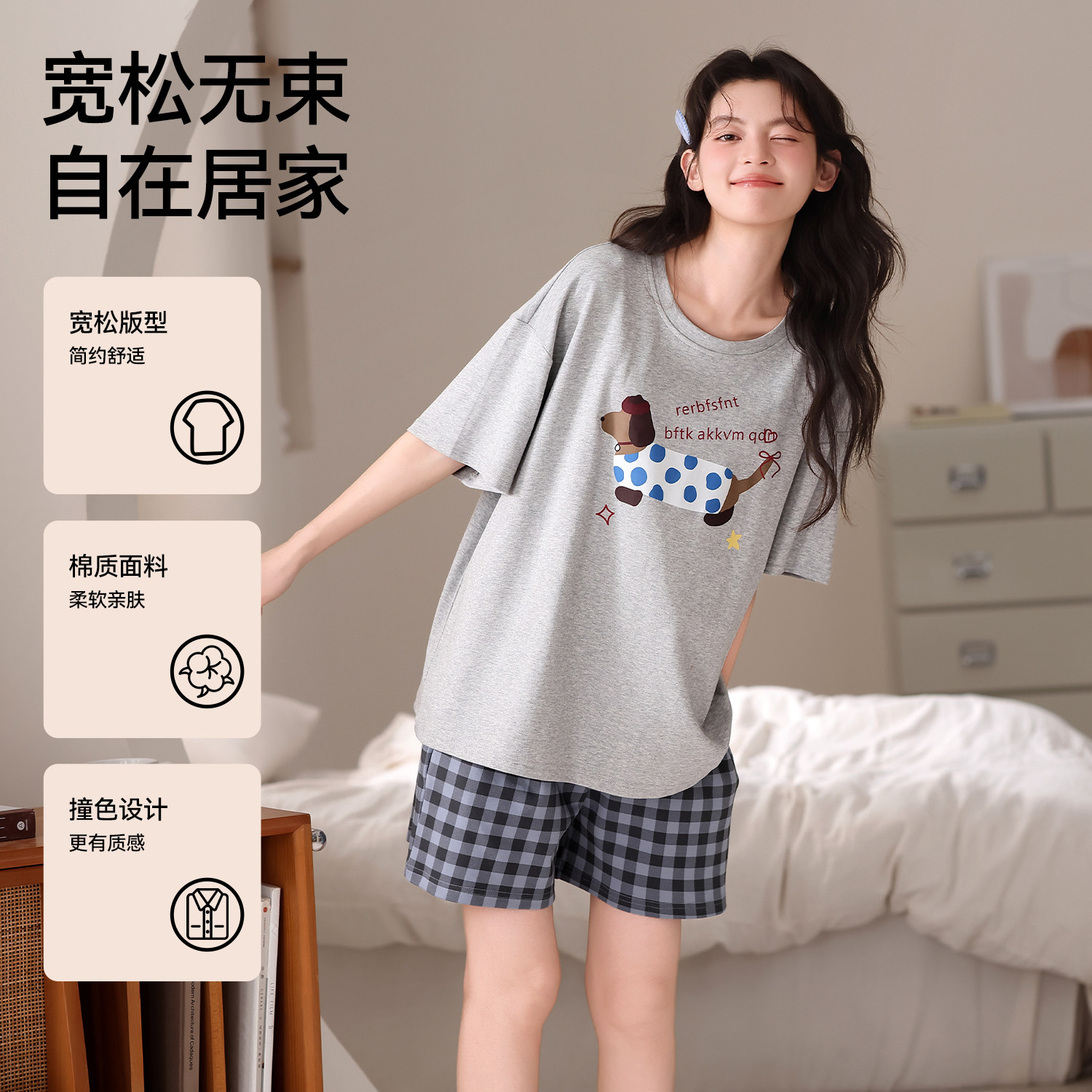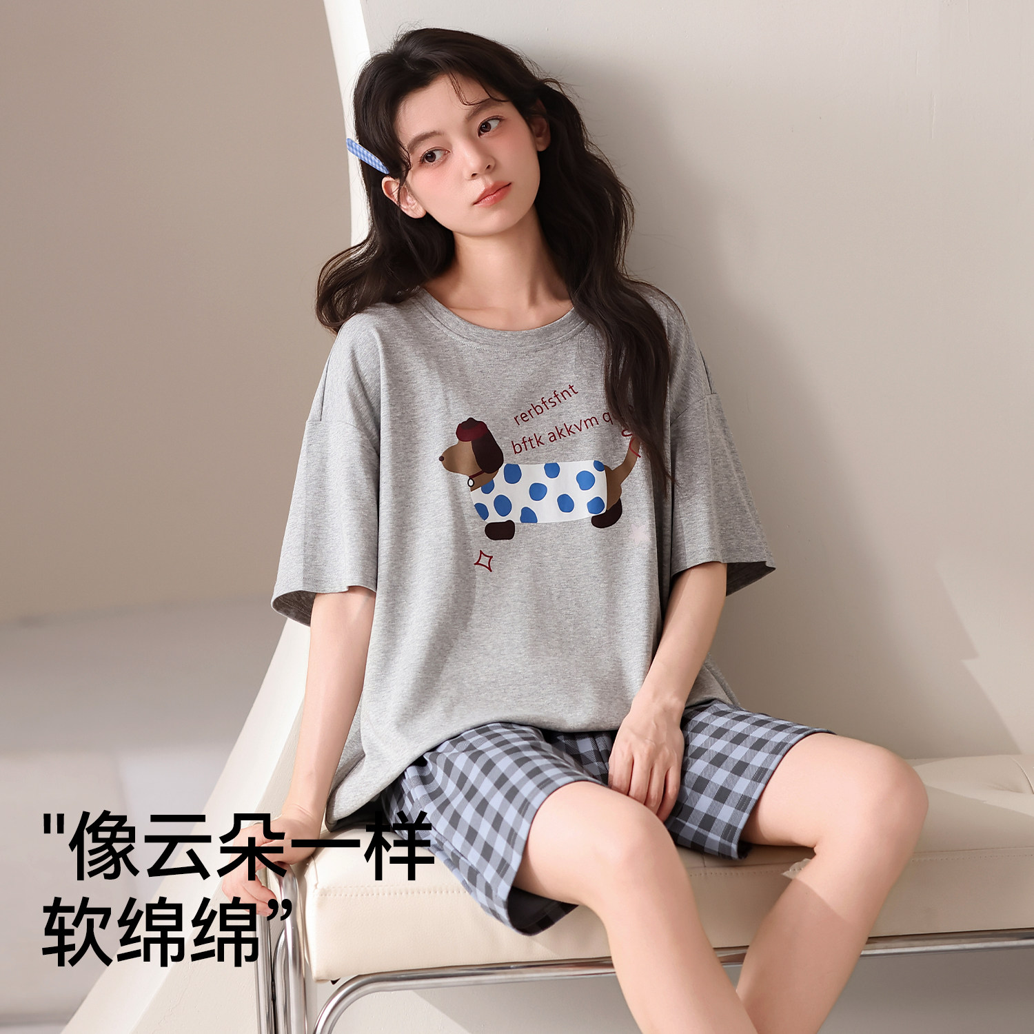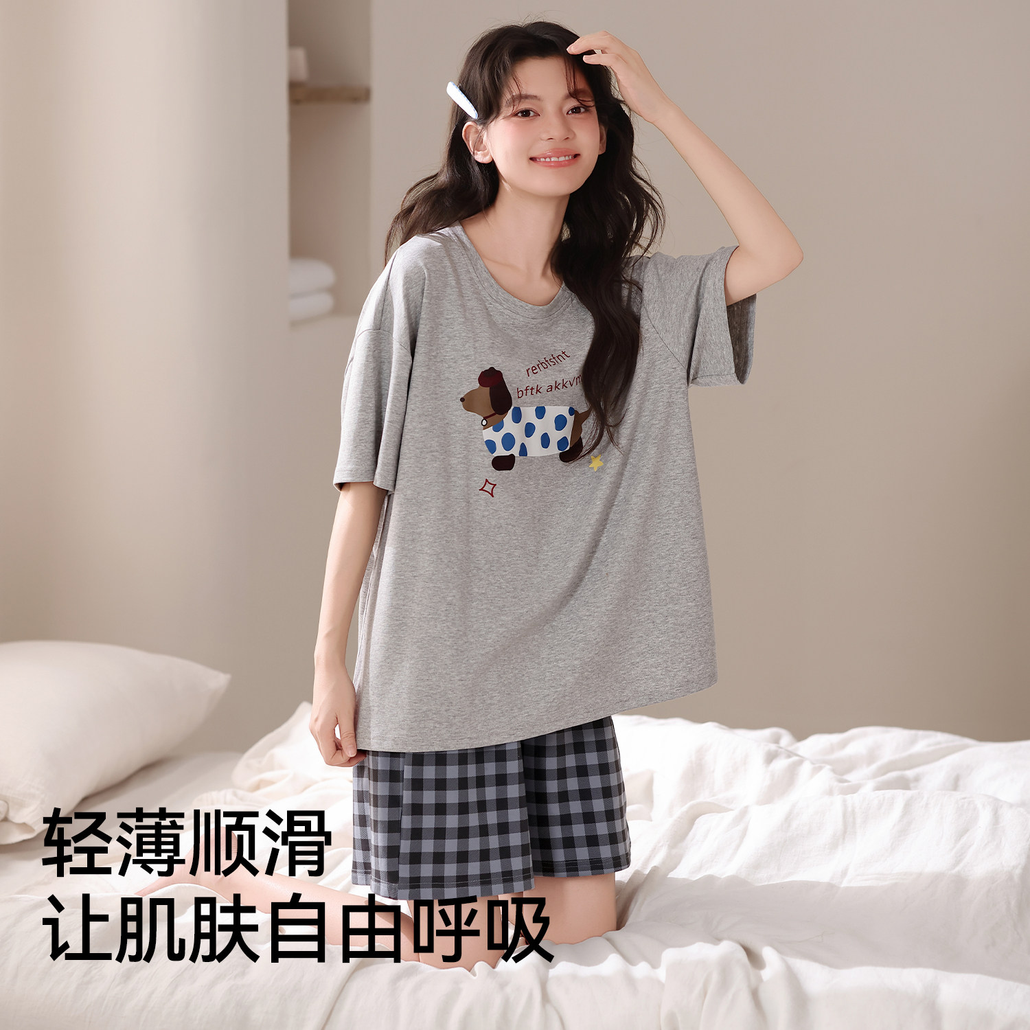 都市丽人纯棉睡衣女夏季2026新款短袖短裤卡通休闲外穿家居服套装