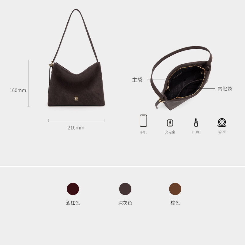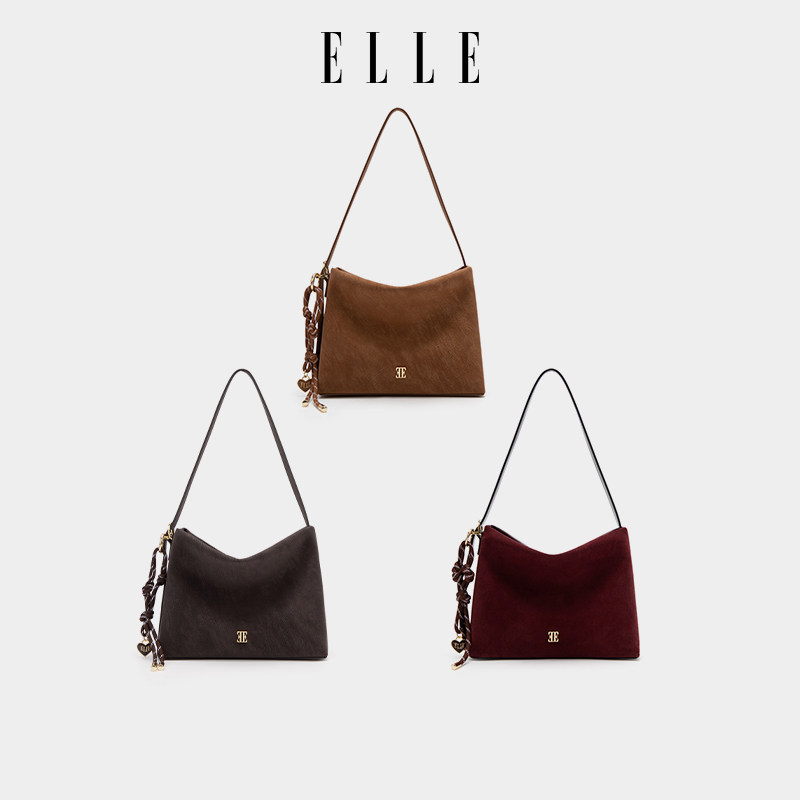 ELLE女包2025新款包包麂皮绒单肩腋下包大容量通勤时尚女士手提包