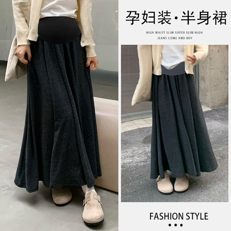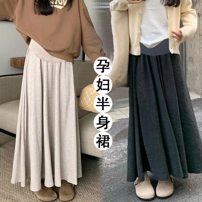 婧麒孕妇半身裙中长裙高腰托腹孕妇裙显瘦气质裙孕妈外穿休闲宽松