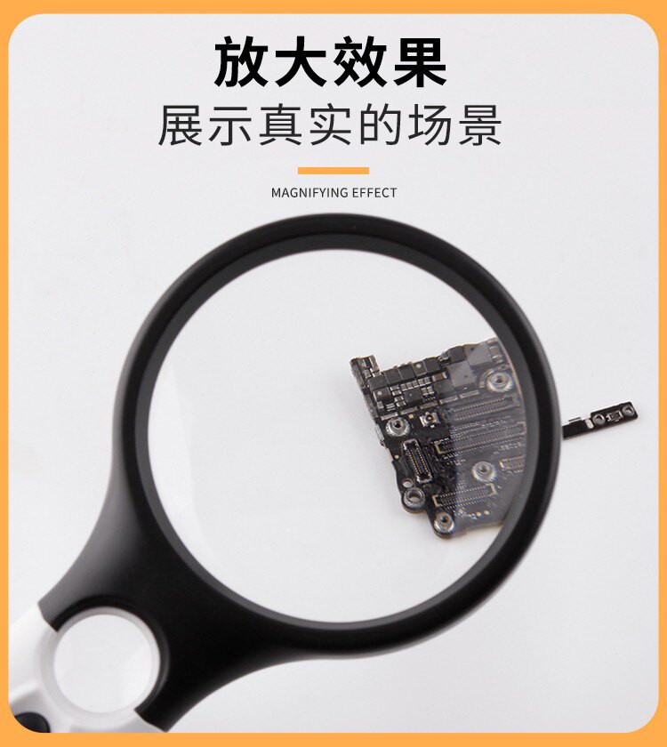 45倍高清放大镜 双镜手持式手机维修看线路板扩大镜老人阅读LED灯