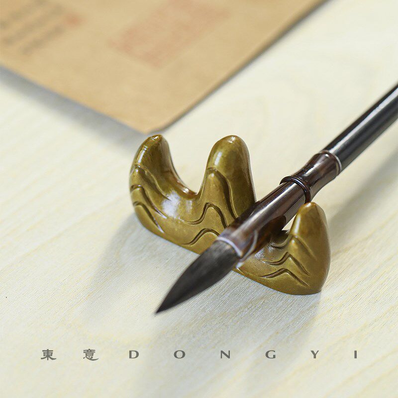 东意文房 黄铜假山笔山笔架笔搁书法毛笔托架摆件创意文镇纸镇尺