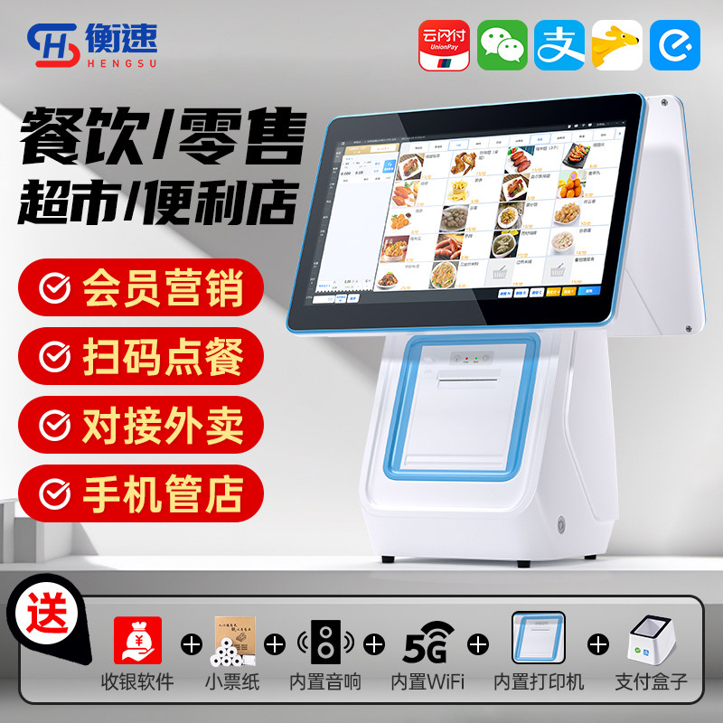 新款触摸收银机一体机商用餐饮奶茶零售超市便利店收银系统扫码点餐点菜机饭店超市水果称重收银一体机收款机