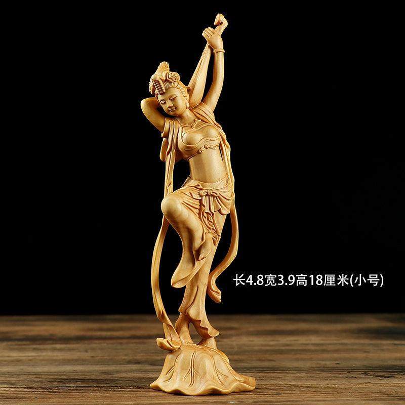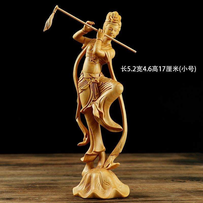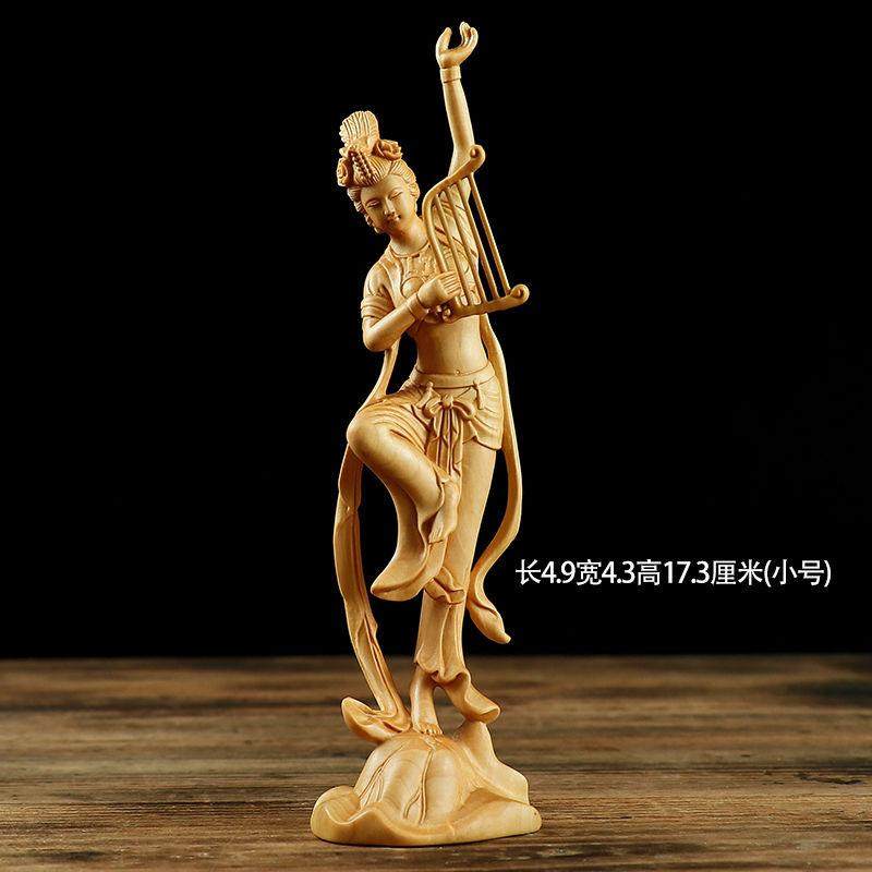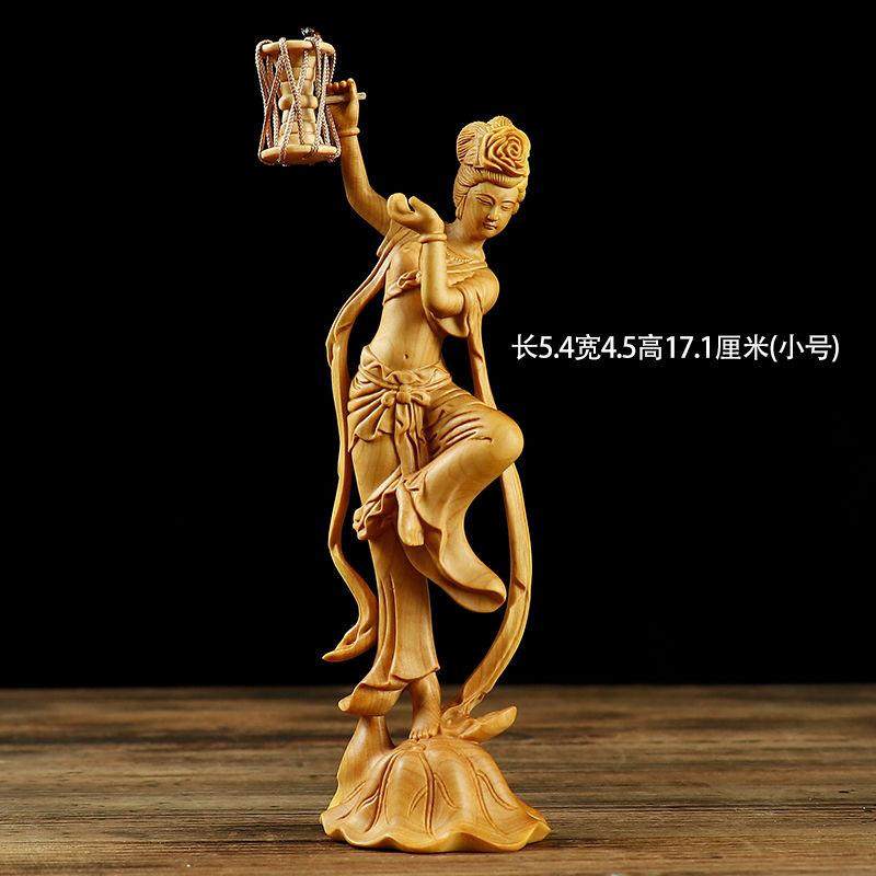 黄杨木雕敦煌飞天仕女图敦煌美女中式古典办公室饰品大气立体雕刻