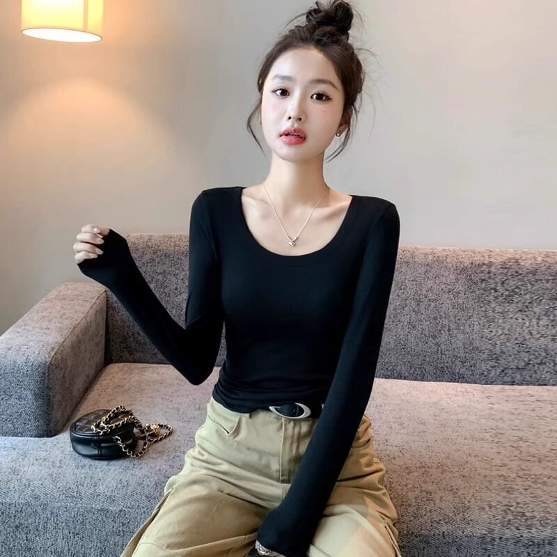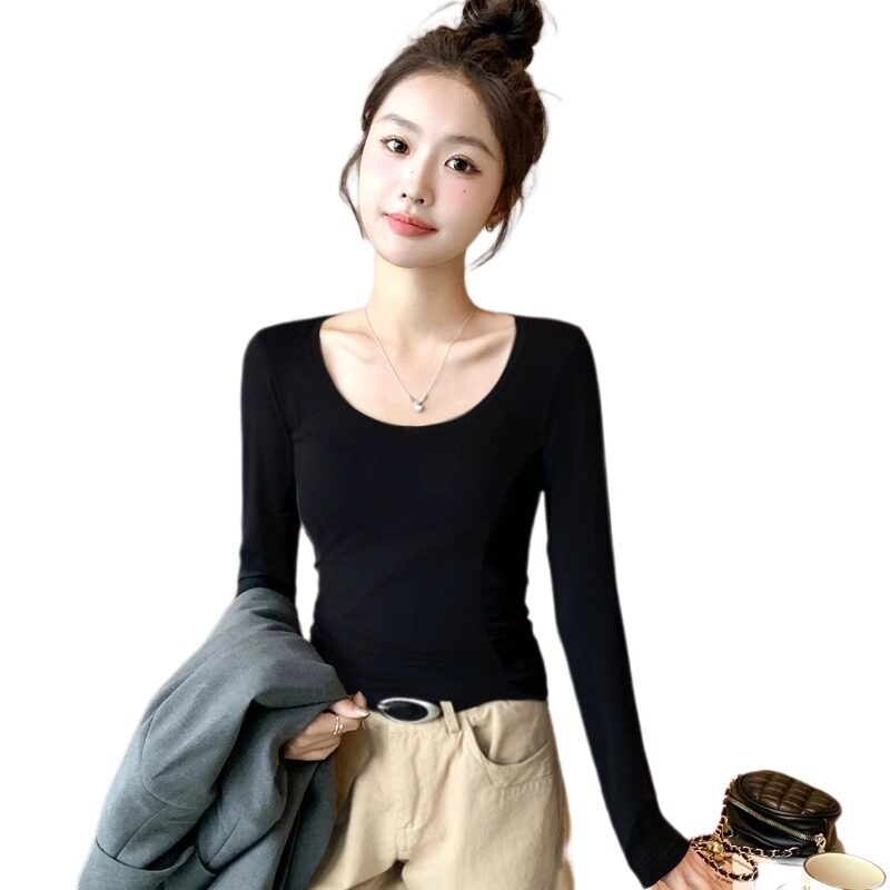 黑色圆领加厚保暖打底衫女内搭秋冬新款低领紧身双面磨毛长袖上衣