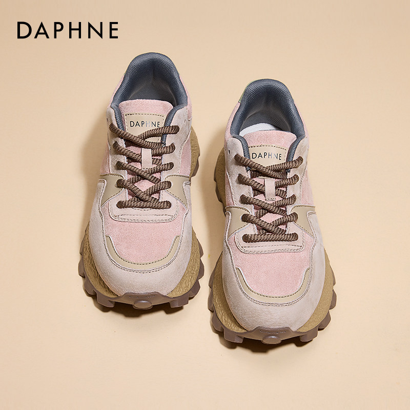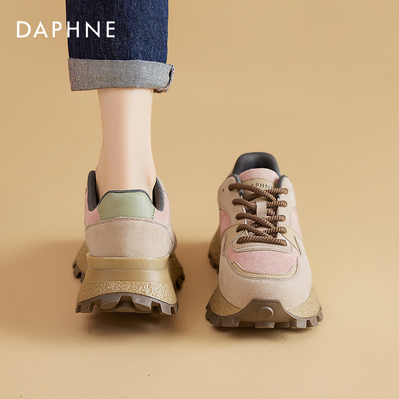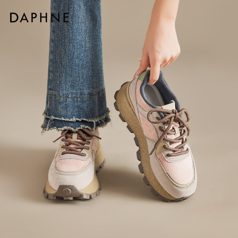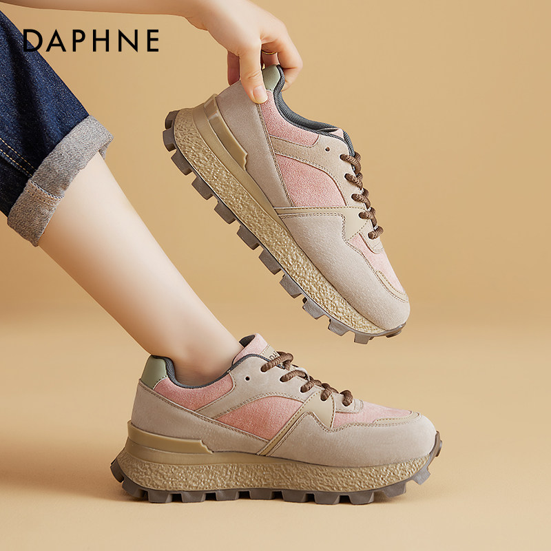达芙妮厚底德训鞋女2026流行爆款杏色板鞋春秋复古增高阿运动甘鞋
