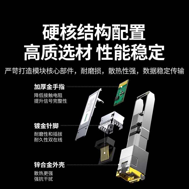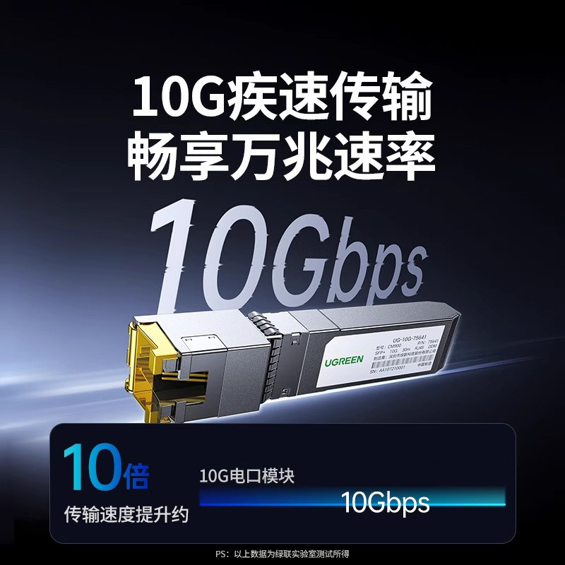 绿联光转电模块千兆万兆SFP+光口转RJ45电口模块进口芯片光电转换10G网络适用于交换机NAS服务器等网络设备
