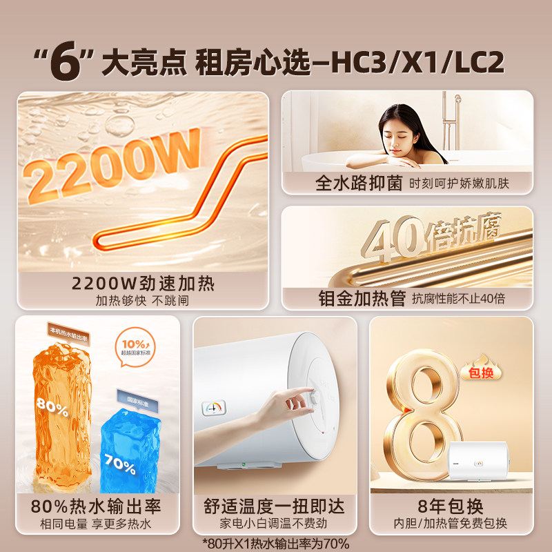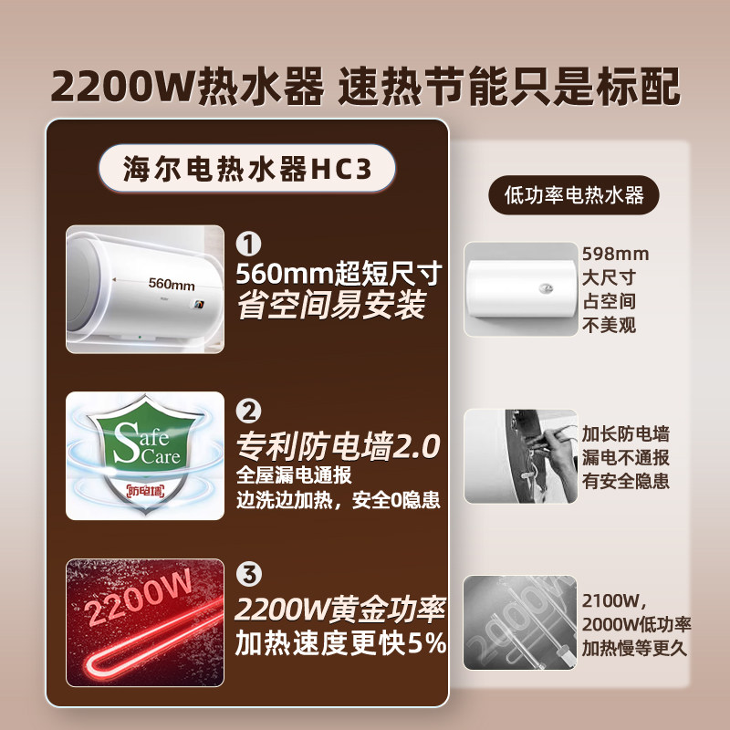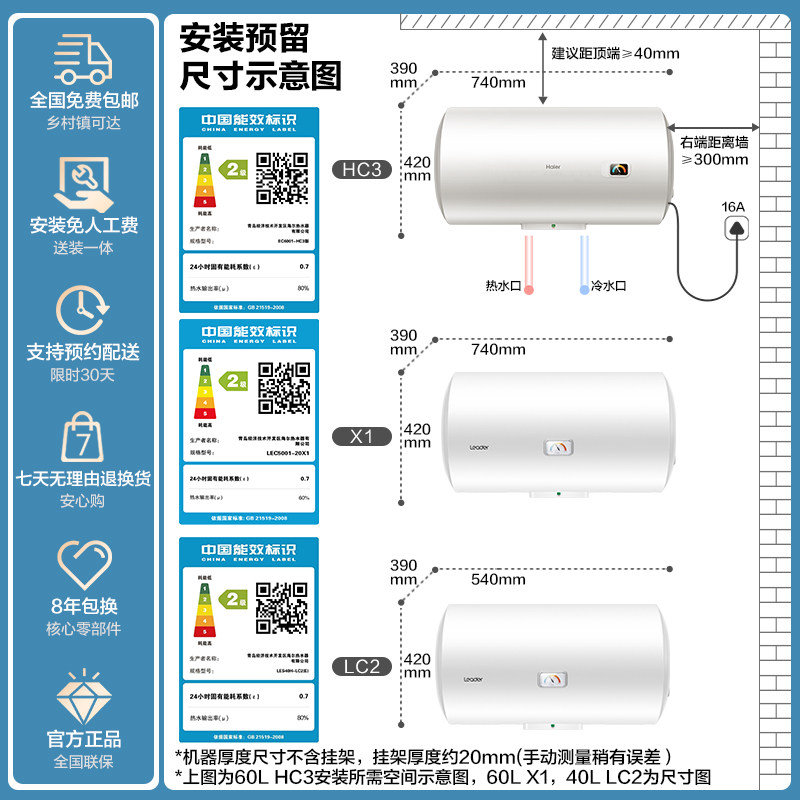 海尔官方出品电热水器家用小型出租房速热40L卫生间洗澡节能HC3