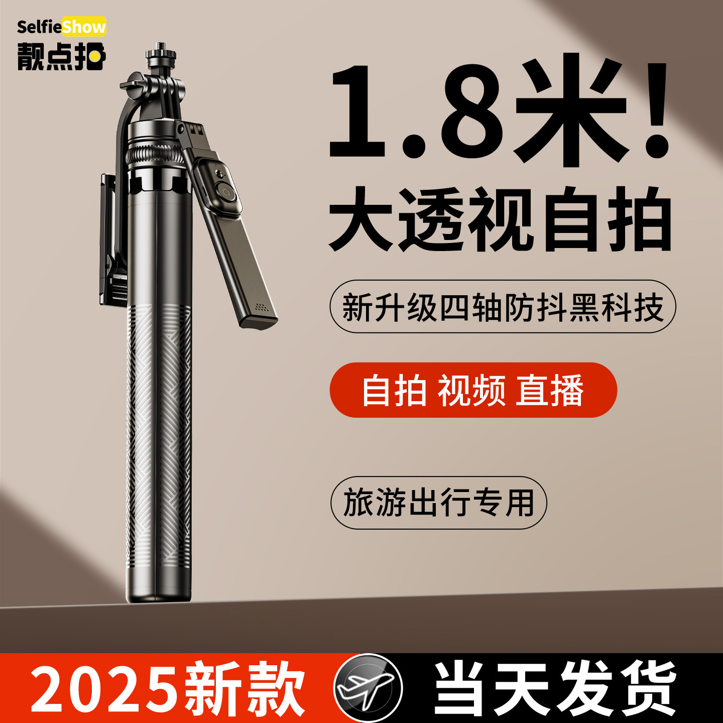 2025新款自拍杆三脚架防抖手持手机直播支架蓝牙遥控便携迷你旅游