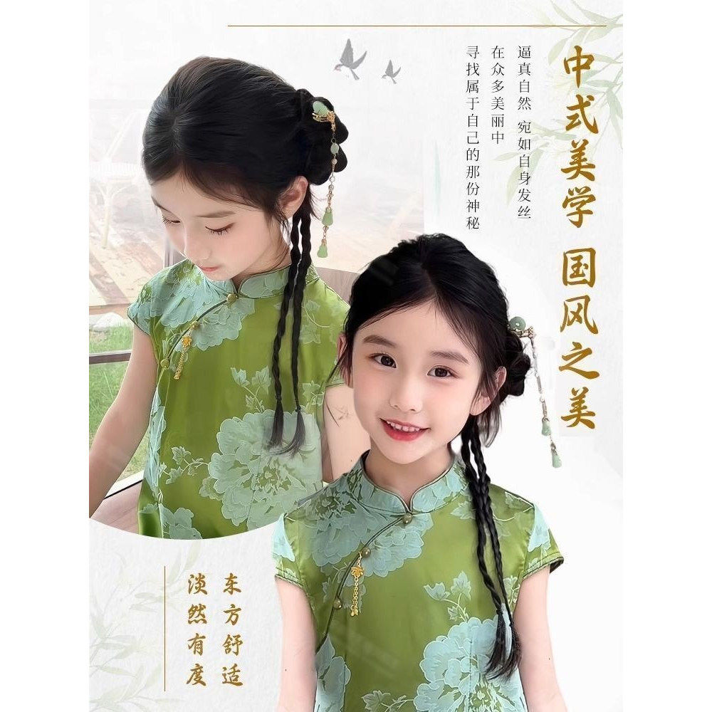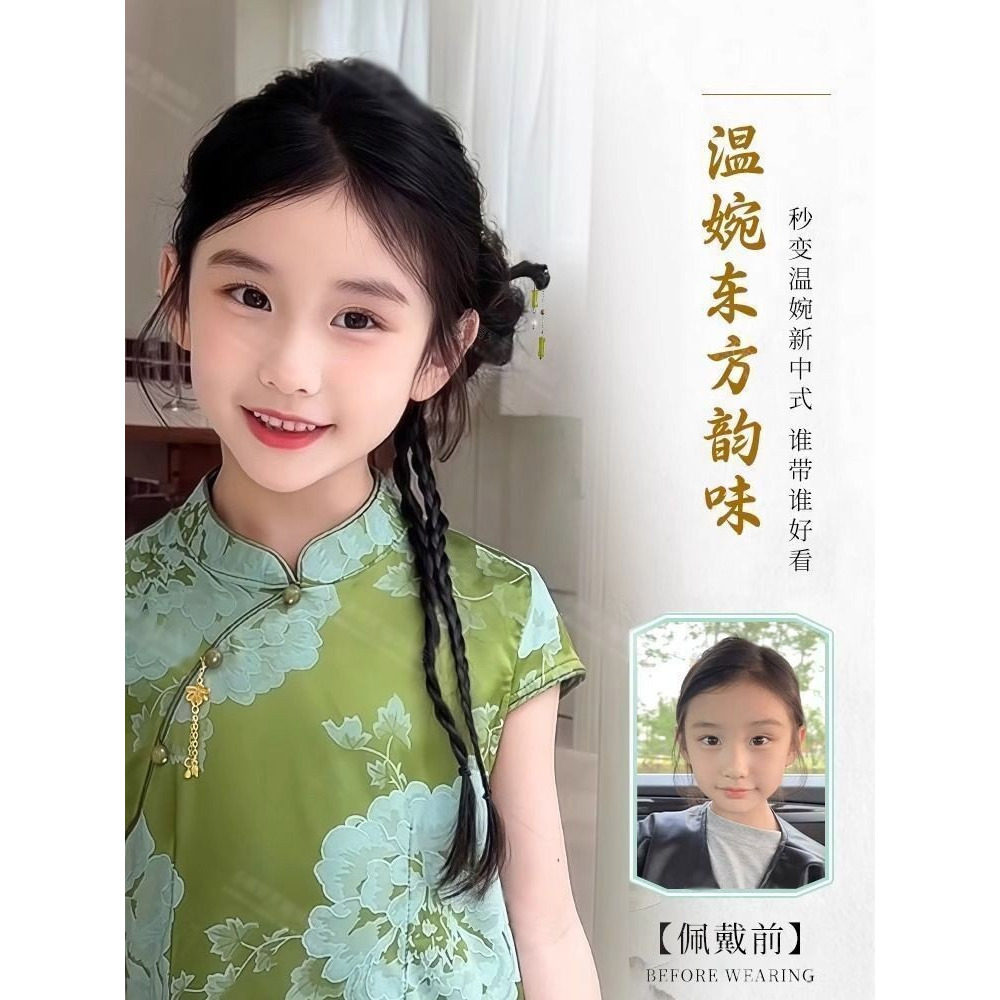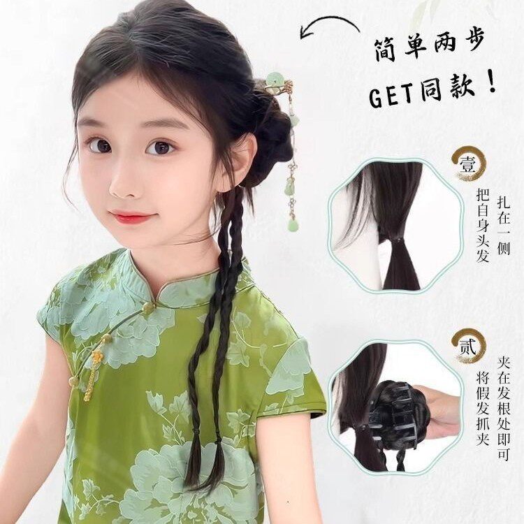 儿童汉服假发辫子马尾抓夹发包蝴蝶麻花扭扭辫表演新中式头饰造型