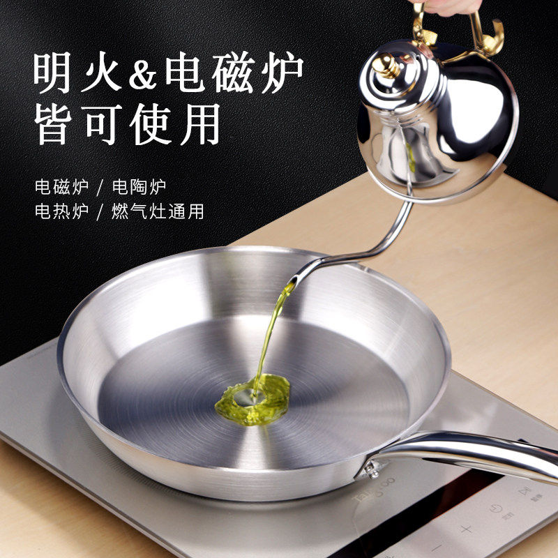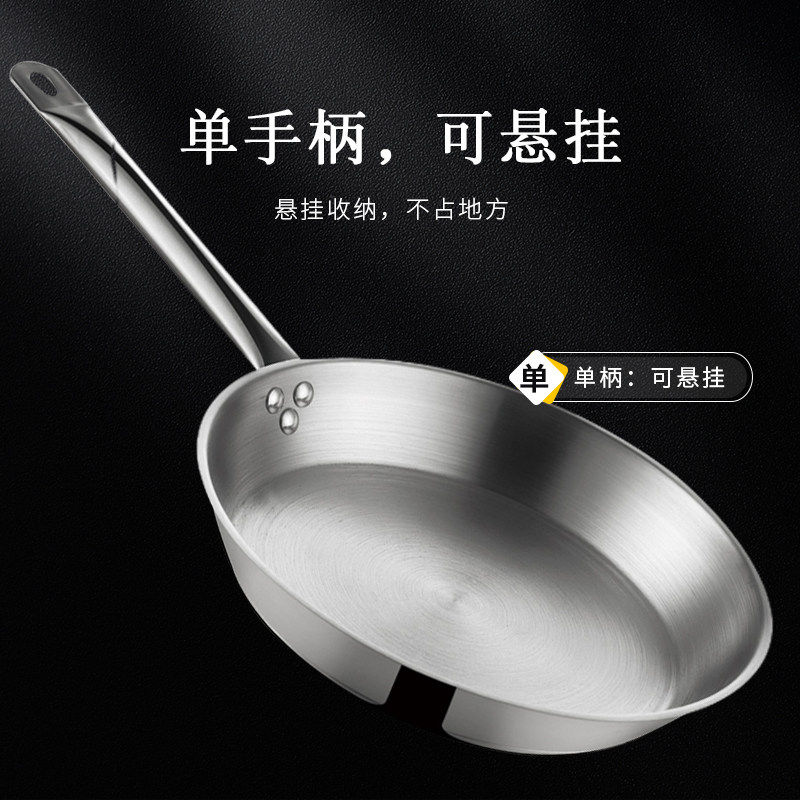 巨博不锈钢商用平底锅家牛排煎锅厚底锅电磁炉专用复合底炒锅双耳