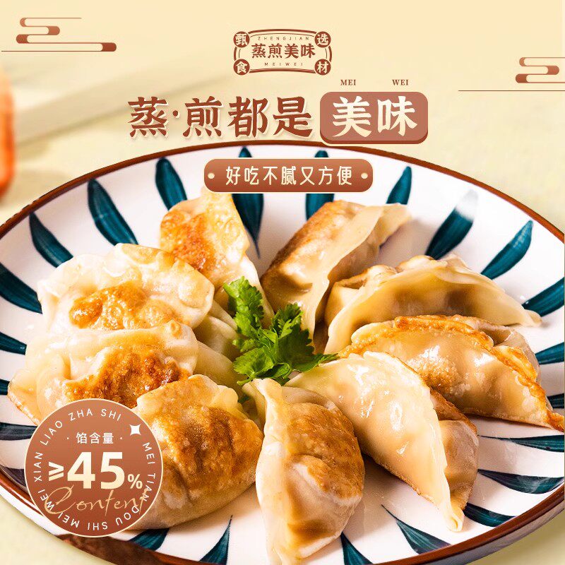 玉米猪肉蒸煎饺速冻半成品蒸饺早餐锅贴冷冻饺子鲜肉速食批发食物