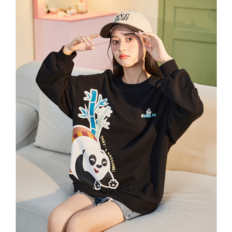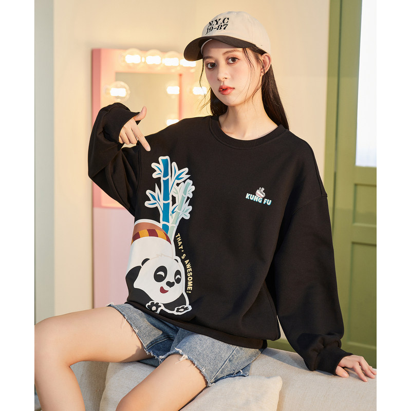 唐狮女装卫衣圆领加绒衣服冬季新卡通上衣慵时尚潮流上衣