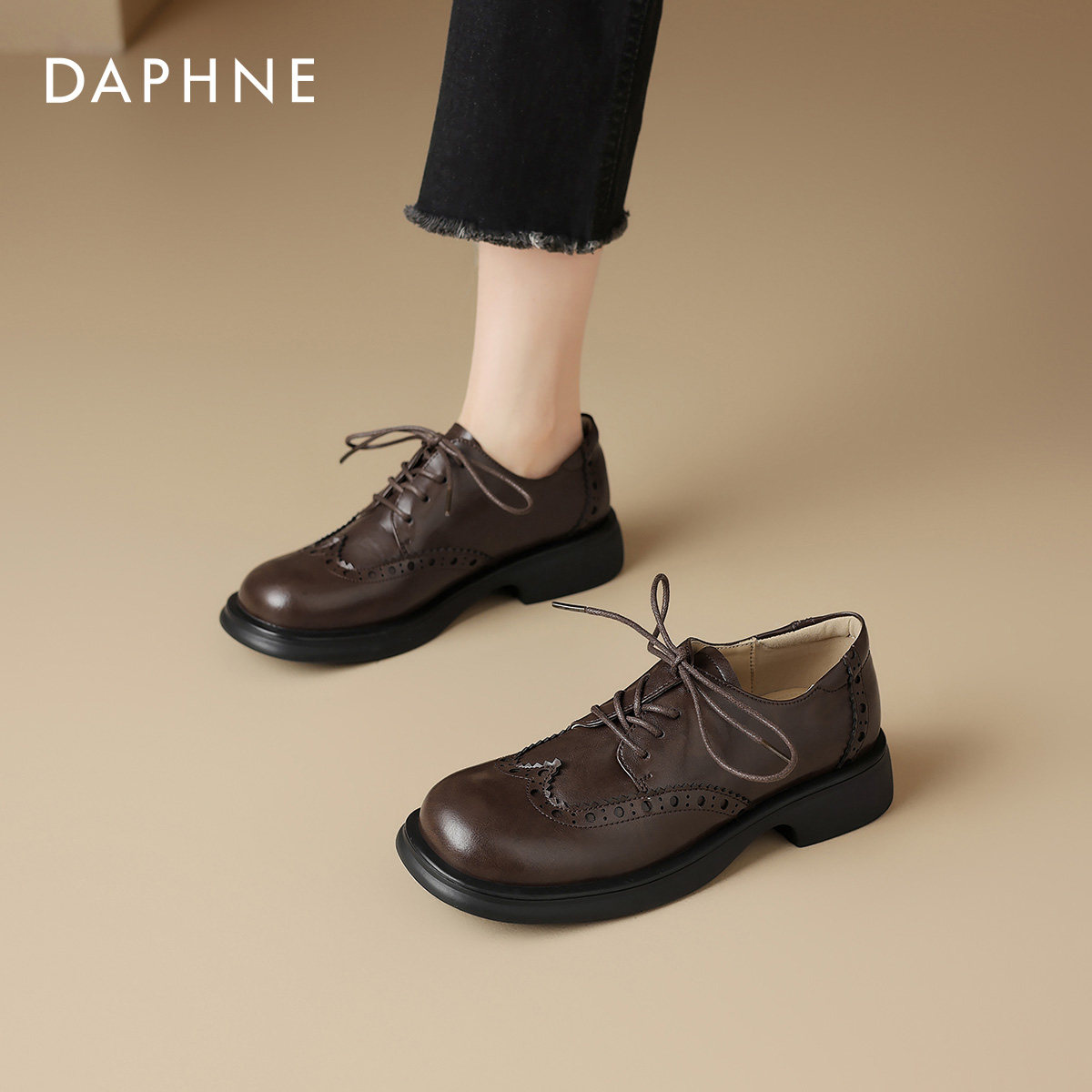 达芙妮黑色乐福鞋女2026新款春季粗跟英伦风小皮鞋平底布洛克单鞋