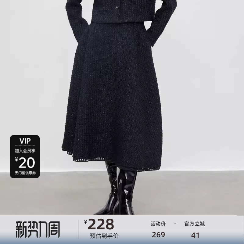 sdeer圣迪奥女装小香风套装格纹拼接毛呢A字伞裙S23481104