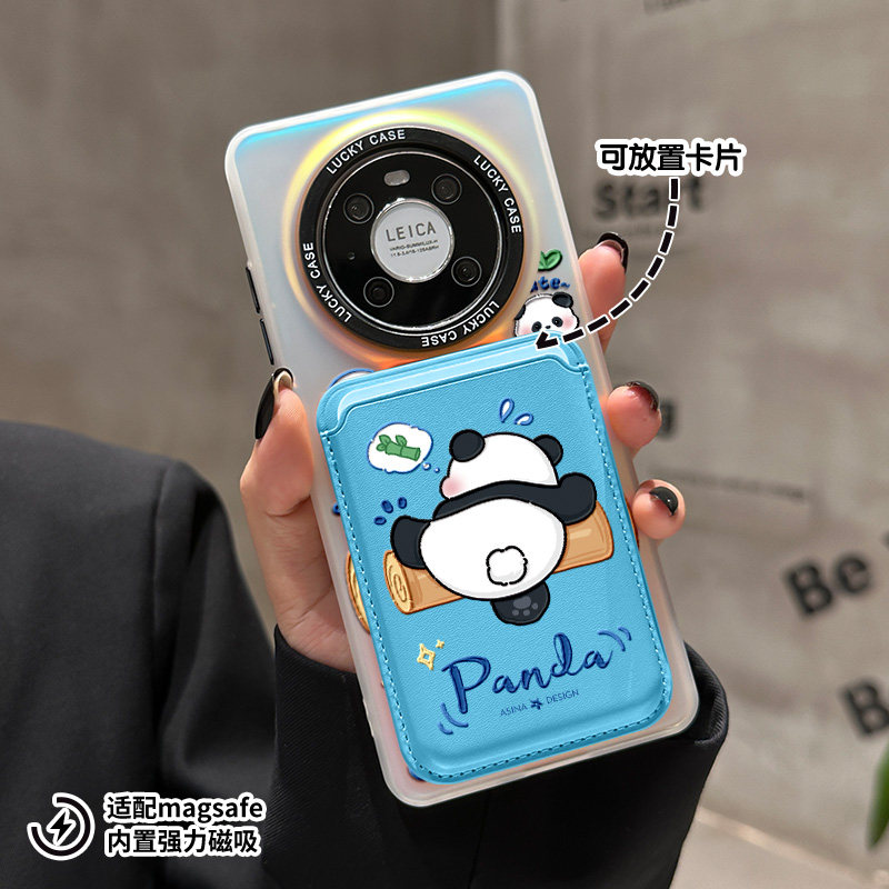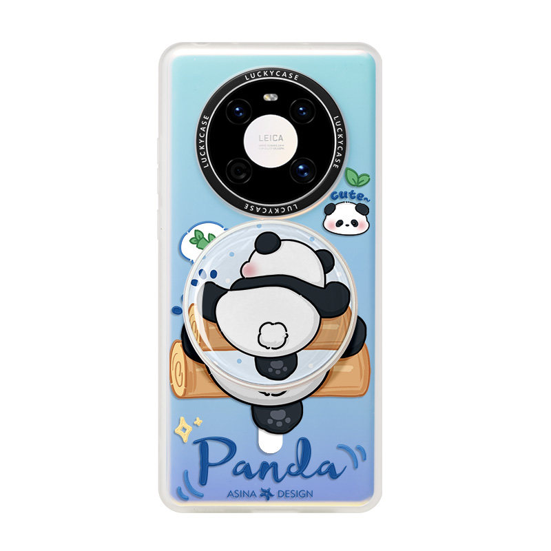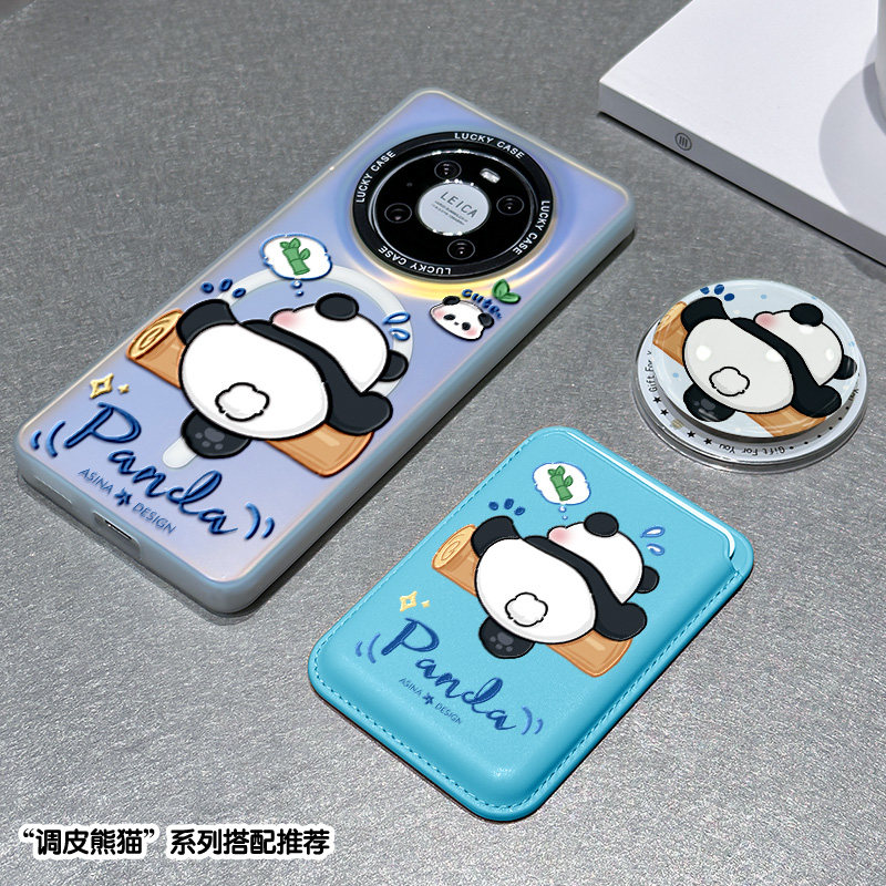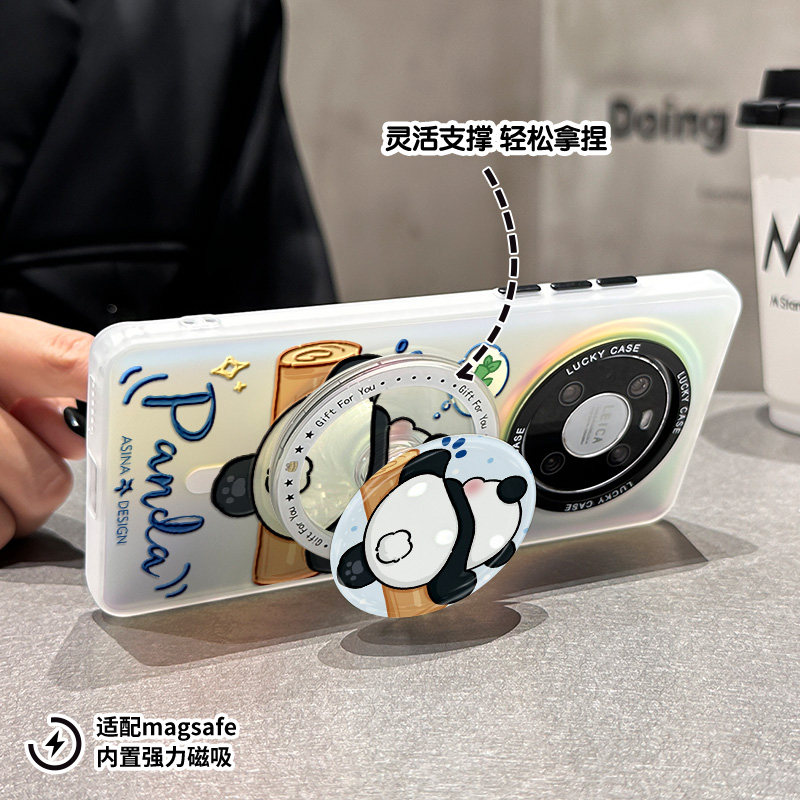 SHEHENG ×调皮熊猫适用于华为Mate60pro手机壳支架p60保护套镭射mate40女p40创意全包mt50防摔mt30por新p50