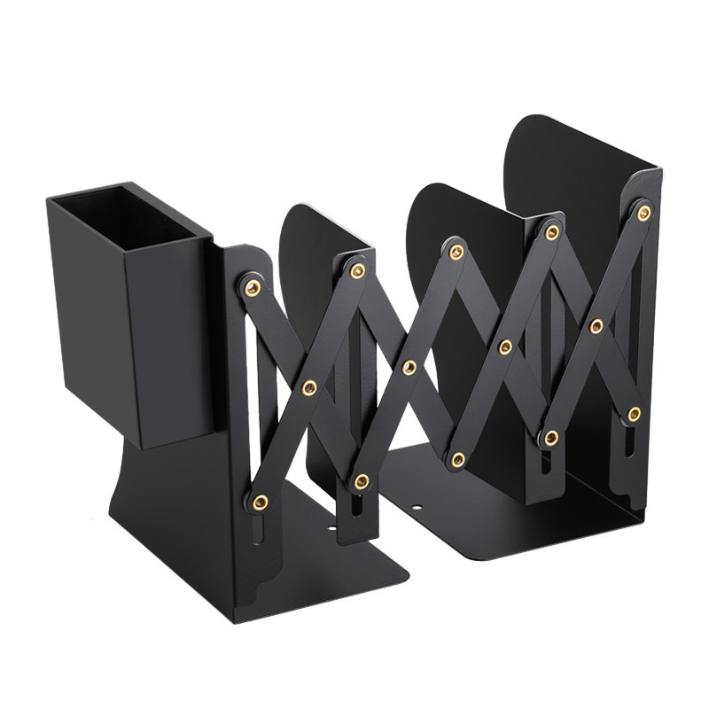 可伸缩金属书立带笔筒书架桌面书本折叠固定书本收纳架一体挡板书夹立架小学生用桌上初高中生创意放书收缩架