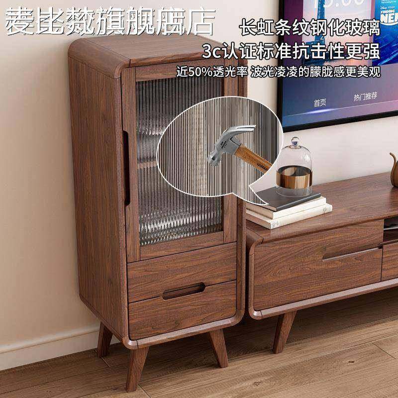 麦比梵全实木电视边柜家用现代简约中式边柜斗柜小户型客厅卧室钢化玻璃床笠拉车