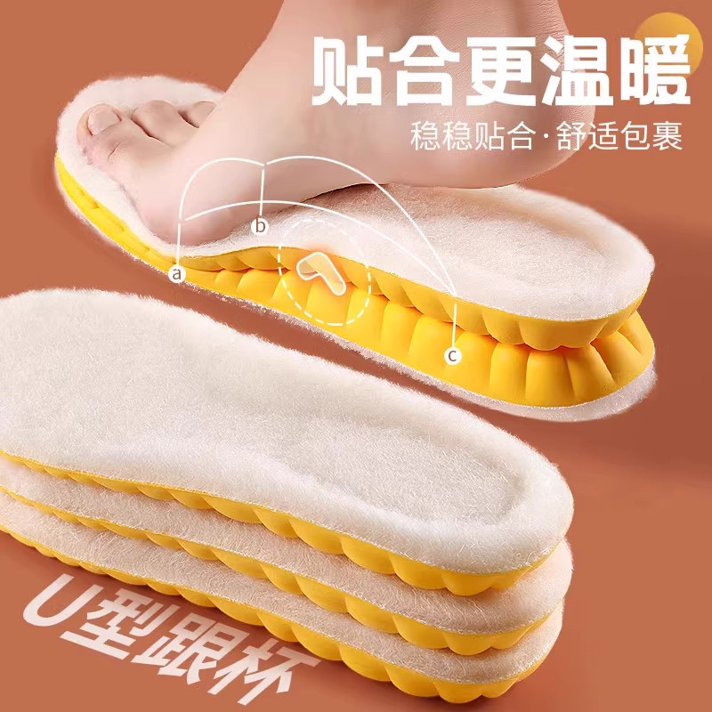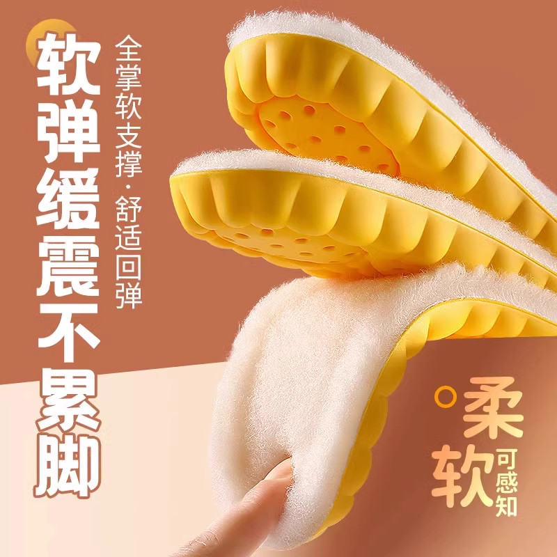 羊毛保暖鞋垫男女加绒加厚防臭毛绒发热棉鞋垫冬季减震缓震软弹