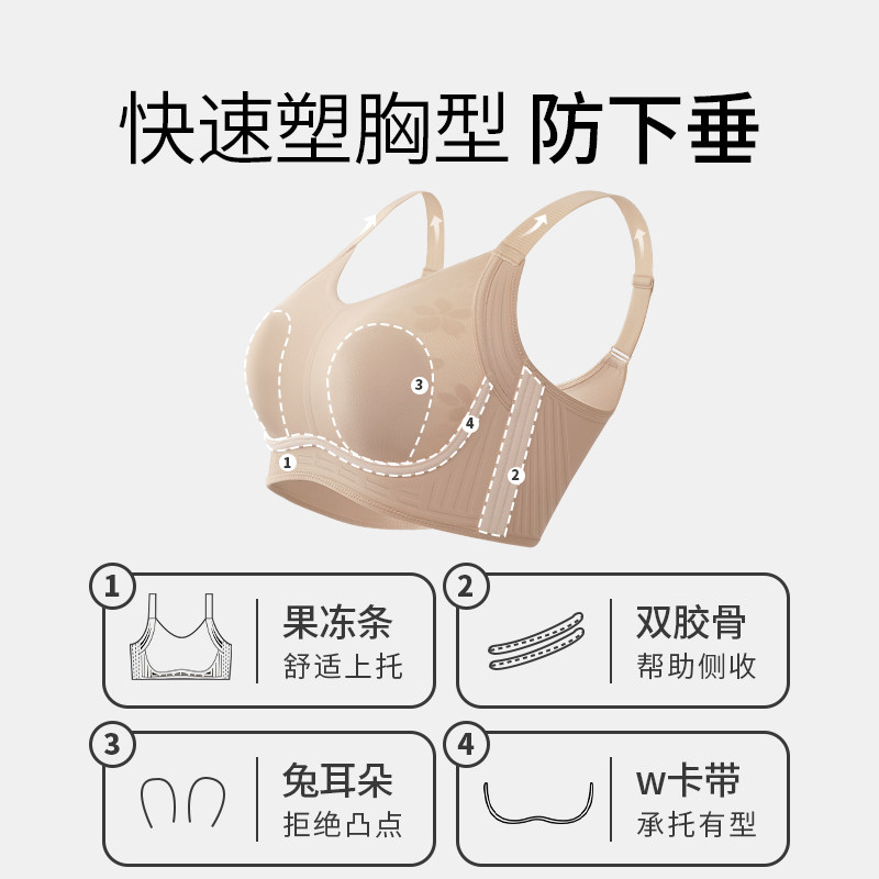 润微提拉女王内衣女大胸显小无痕大码调整防下垂收副乳粉底液文胸