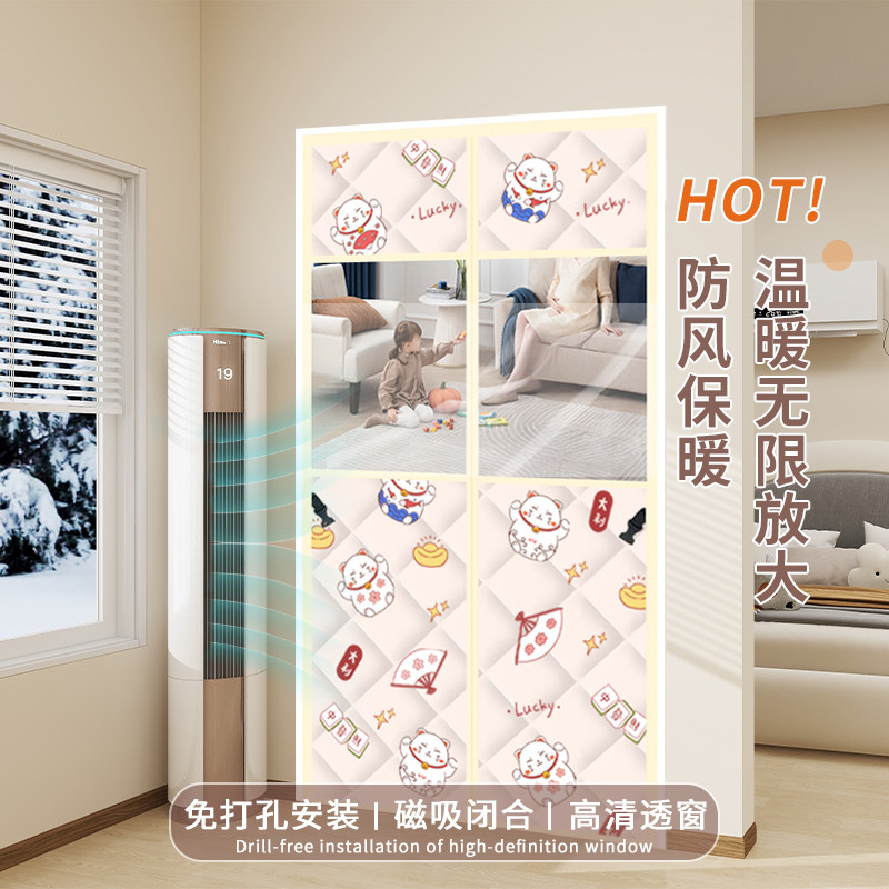 家用免打孔卧室空调挡风门帘加厚防风隔断帘厨房隔油烟遮挡帘挂帘