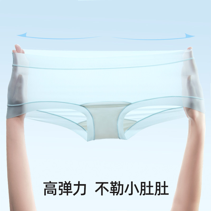 幸棉超薄冰丝内裤女生无痕凉感速干桑蚕丝抗菌加长裆中腰三角短裤