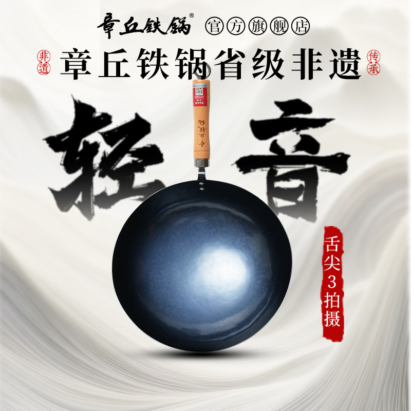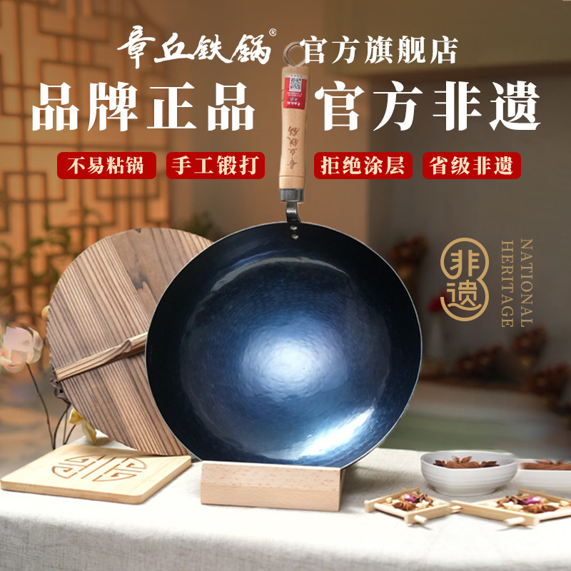 章丘铁锅官方旗舰店正品铁锅炒锅手工锻打无涂层不粘炒菜家用轻音