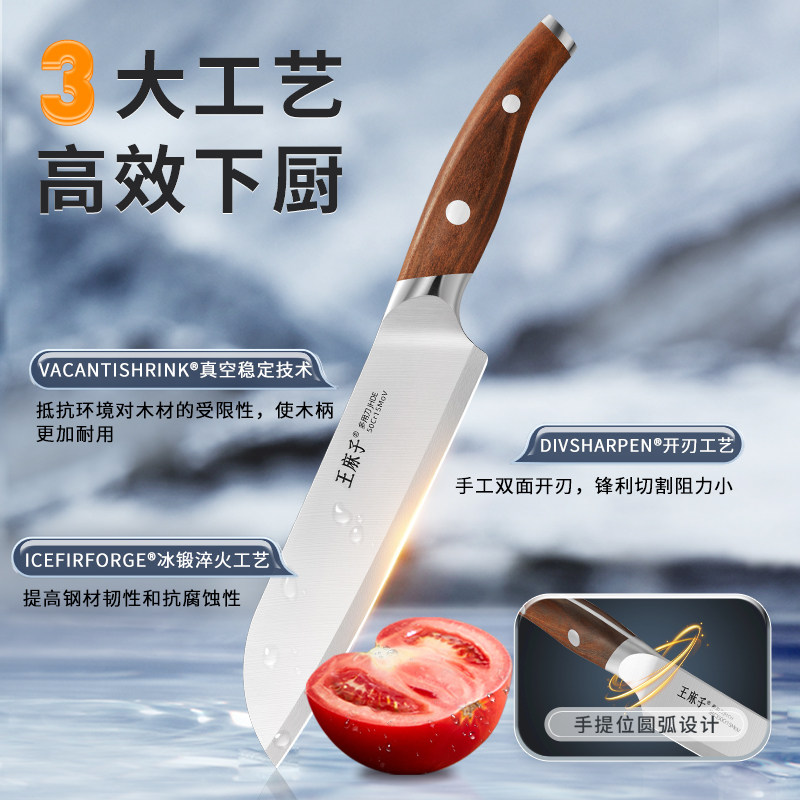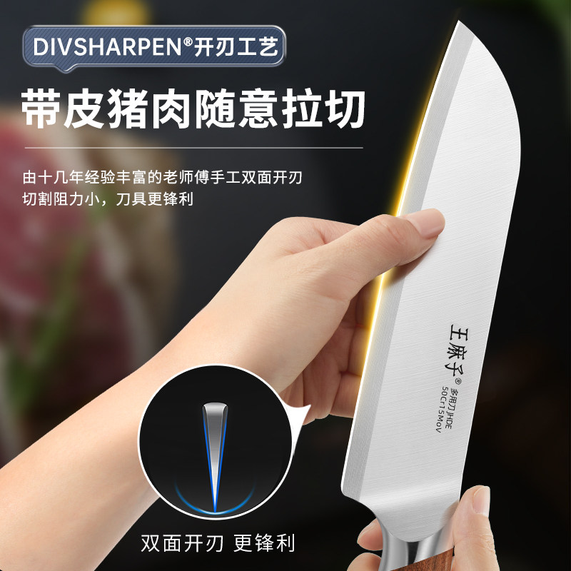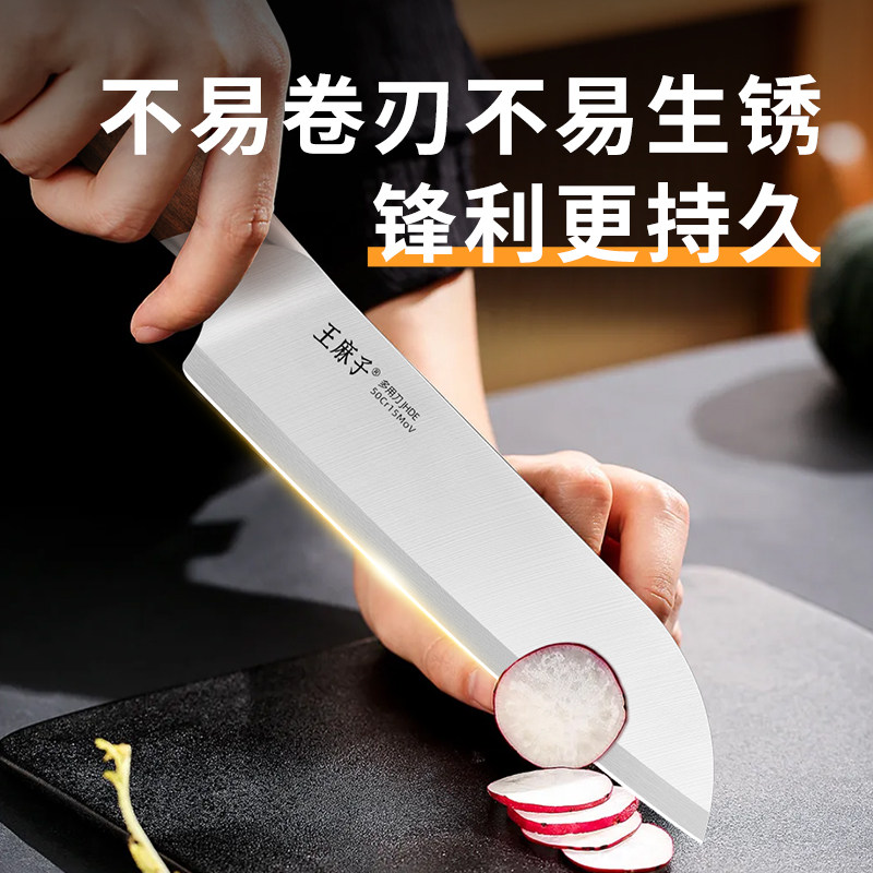 王麻子多用刀家用菜刀三德刀切肉切片切菜刀具水果刀官方旗舰店